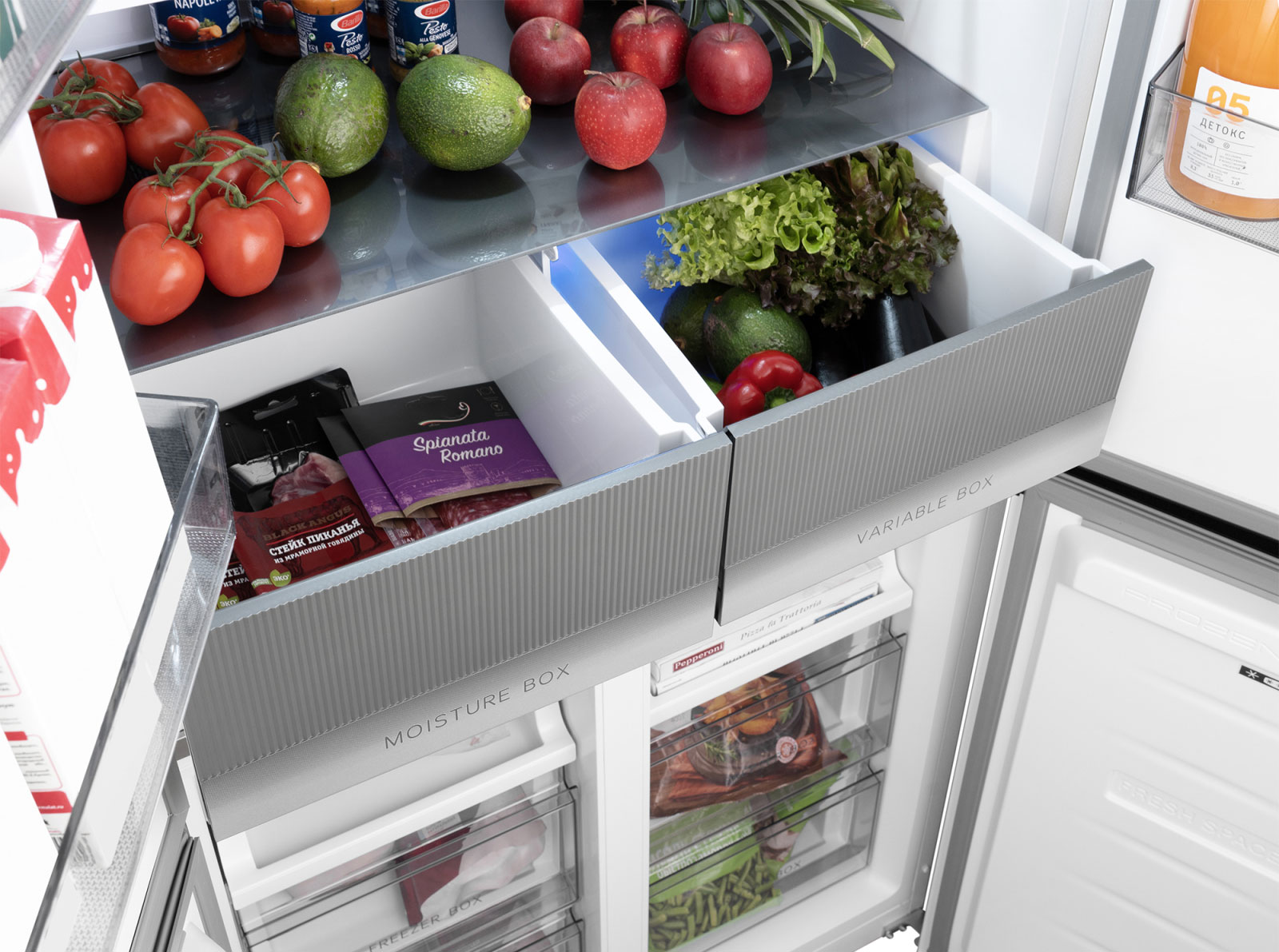Зона свежести — это специальный отсек, идеально подходящий для хранения овощей и фруктов. Благодаря поддержанию оптимального уровня влажности в нём создаются идеальные условия, которые помогают продуктам дольше оставаться свежими, сочными и полными витаминов.