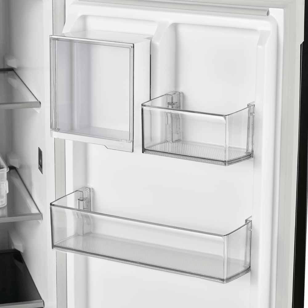 Холодильник Maunfeld MFF190NFDSB отличается продуманной организацией внутреннего пространства, несмотря на свою компактность (если это стандартная модель, то с хорошей вместимостью). Он оснащен прочными полками из закаленного стекла, которые выдерживают значительный вес и легко регулируются по высоте. Вместительные ящики для овощей и фруктов помогают поддерживать необходимый уровень влажности, сохраняя продукты сочными. Прозрачные ящики в морозильной камере позволяют легко находить замороженные продукты, не доставая их по очереди.