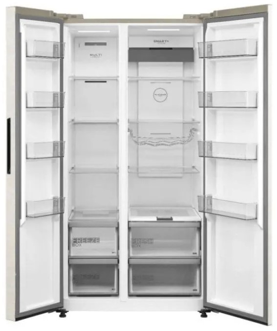 Холодильник Midea MDRS791MIE33 предлагает большую вместимость и удобную внутреннюю организацию, подходящую для больших семей и запасливых хозяев.