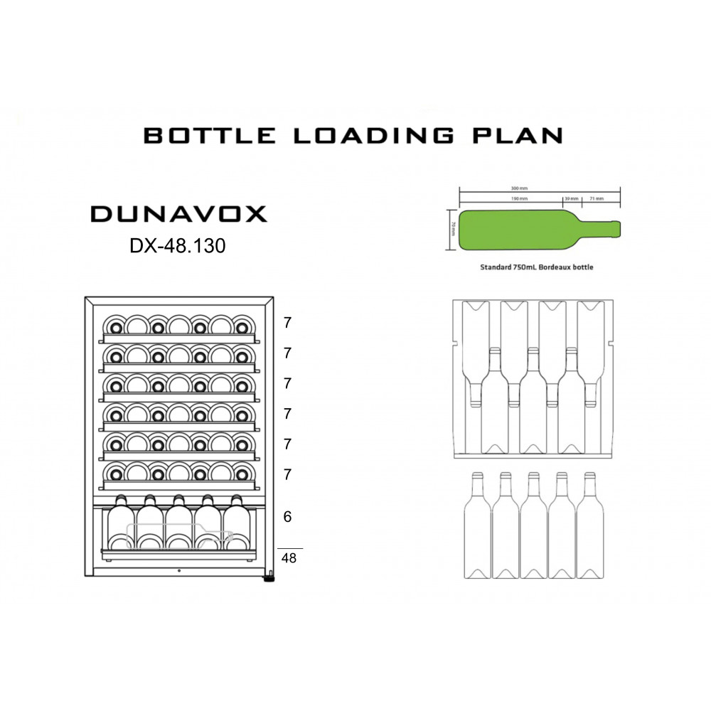 - ОписаниеВинный шкаф Dunavox DX-48.130KF DX-48.130KF самый доступный винный шкаф в пересчете на стоимость хранения одной бутылки. Модель укомплектована семью полками из натурального дерева (включая одну презентационую) и одной металлической демонстрационной решеткой для вертикальной установки бутылок. Шкаф имеет одну зону охлаждения. Индикатор температуры и внутренняя подсветка выполнены на светодиодах приятного синего цвета. Специальная система поддержания влажности и компрессорная система охлаждения обеспечит в Вашем винном шкафе идеальные условия для хранения любых видов вин. Винный шкаф Duvanox DX-48.130KF может использоваться как отдельностоящий, так и встроенный, с соблюдением необходимых для охлаждения зазоров 2-5 см, т.к. охлаждение винного шкафа осуществляется через нагрев боковых стенок. Также под винным шкафом желательно сделать воздухозаборную решетку с выводом воздуха за винный шкаф, для лучшего охлаждения компрессора. Отличительные особенности: Одна зона охлаждения Ручная система оттаивания Вентилируемая система поддержания влажности Семь деревянных полок без лакового покрытия, включая одну демонстрационную Презентационное хромированное ограждение служит для демонстрации лучших вин коллекции и открытых бутылок Функциональные особенности: Дверца шкафа выполнена из тонированного стекла с защитой от УФ лучей в рамке черного цвета Постоянная рабочая температура +12°C подходит для хранения большинства сортов вин Внутреннее освещение (светодиодная подсветка) Климатические классы: N: от + 16 °C до + 32 °C SN: от + 10 °C до + 32 °C ST: от + 18 °C до + 38 °C T: от + 18 °C до + 43 °C Dunavox оставляет за собой право изменять параметры без предварительного уведомления.