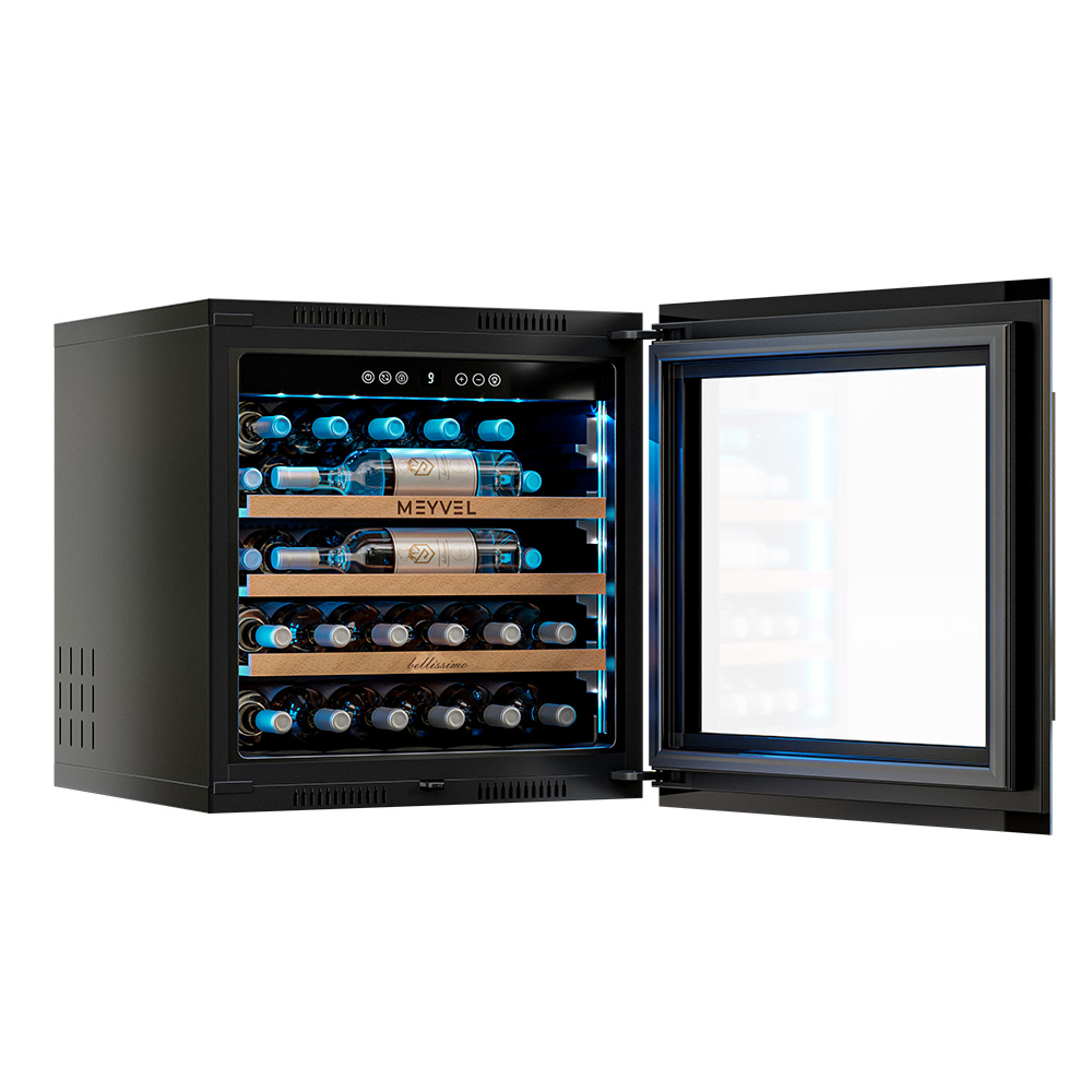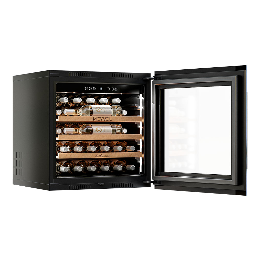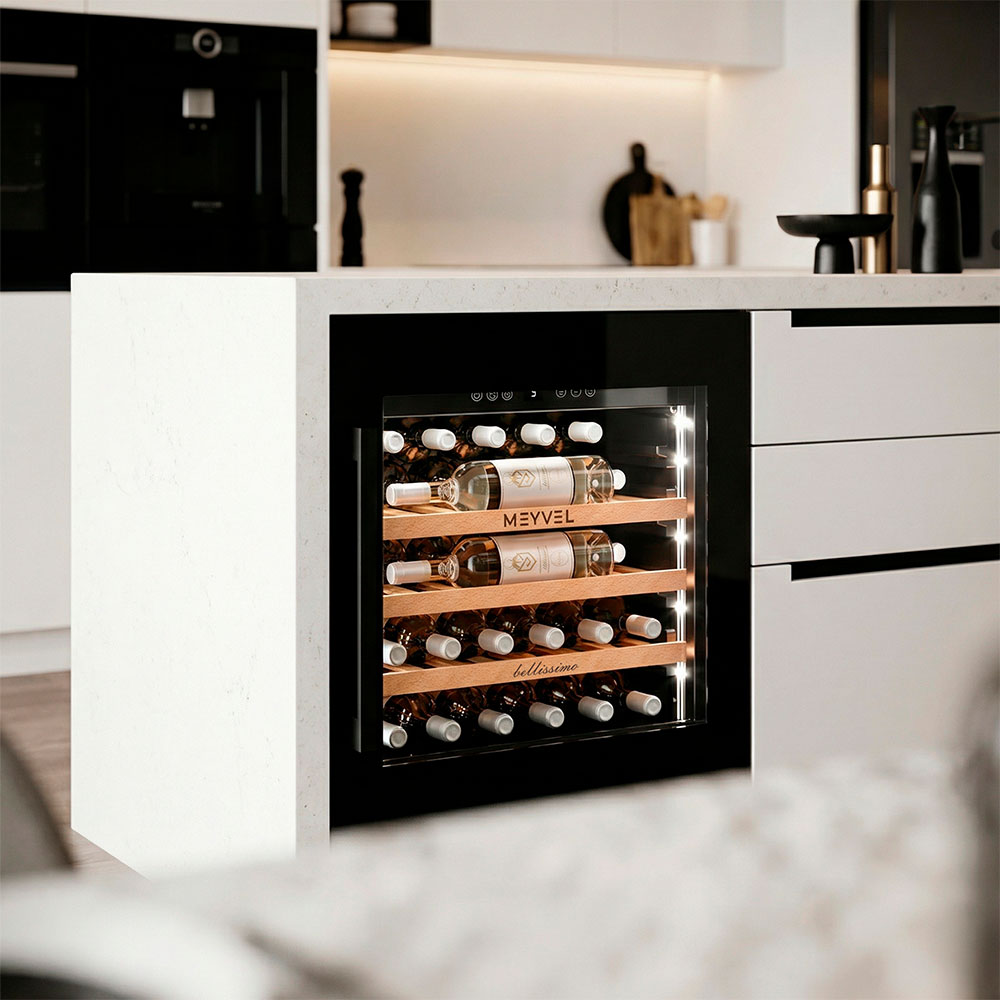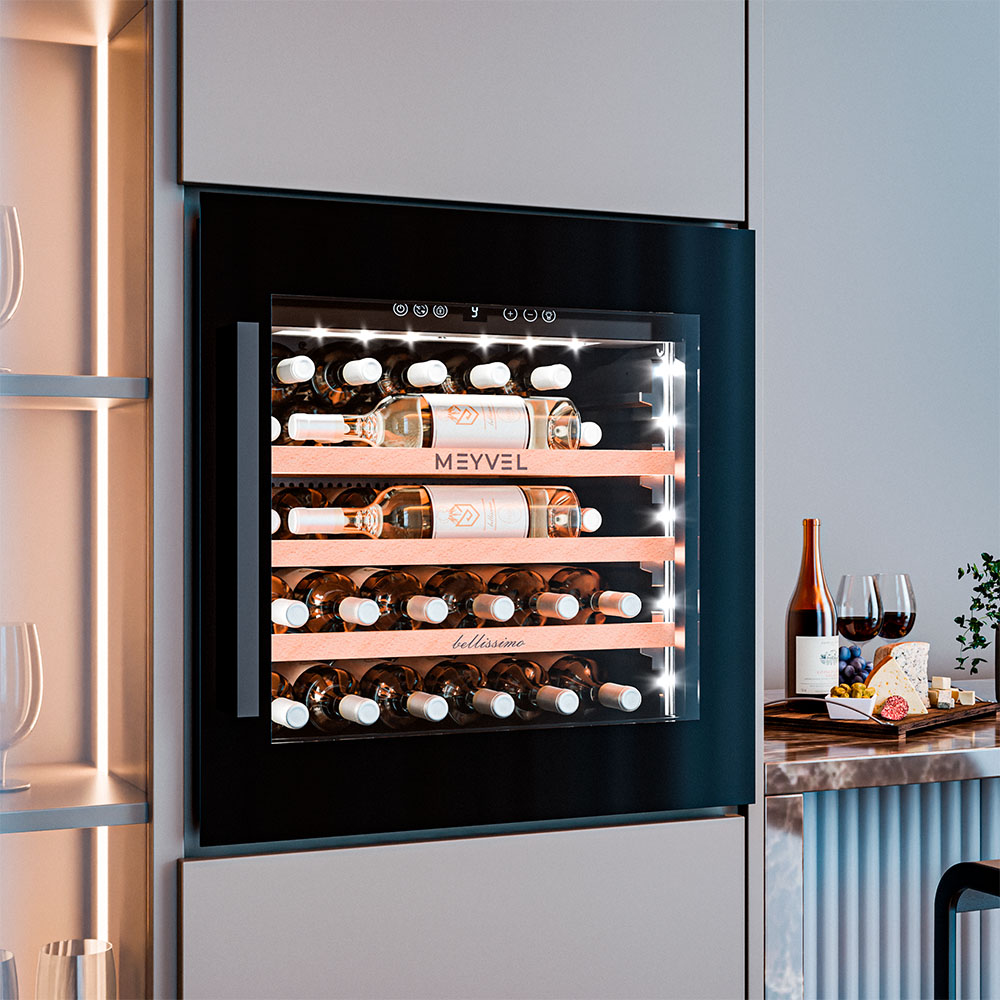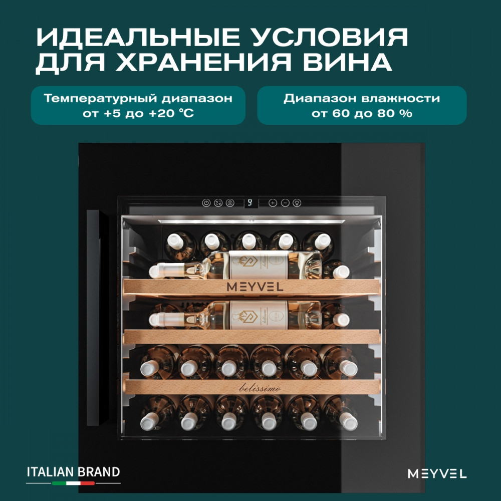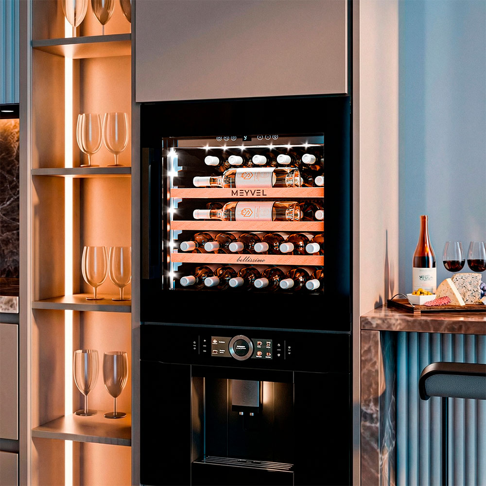 - ОписаниеВстраиваемый винный шкаф Meyvel MV31PRO-KBB1 Современные винные шкафы давно перестали быть доступной только профессионалам техникой — сегодня они могут стать частью любого интерьера. Одно из таких продуманных устройств — винный шкаф Meyvel MV31PRO-KBB1, который сочетает технологичность, функциональность и стильный дизайн. Компрессорная система охлаждения Винный шкаф оснащён компрессорной системой охлаждения, которая поддерживает настройки даже при перепадах внешней температуры. Это значит, что вино находится в правильном микроклимате, без колебаний, которые могут повлиять на его качество. Система работает эффективно и надёжно, обеспечивая диапазон температур от +5 до +20°C и уровень влажности 60-80%, подходящие для всех сортов вина — от лёгкого белого до насыщенного красного. Вместимость и организация пространства Модель MV31PRO-KBB1 рассчитана на 31 бутылку формата «Бордо» (но есть и полка для нестандартных бутылок). Для их размещения предусмотрены три полки из натурального бука. Дерево выбрано не случайно: оно гасит вибрации, не накапливает посторонние запахи и создаёт благоприятную среду для вина. А благодаря компактности, устройство отлично подойдёт и для небольшой коллекции в уютном ресторане, и для домашнего бара. Удобство и эстетика Винный шкаф Meyvel MV31PRO-KBB1 разработан так, чтобы легко вписываться в разные пространства. Его можно встроить в колонну или установить под столешницу, что особенно ценно для кухонь и гостиных в современном стиле. При необходимости высота корректируется благодаря регулируемым ножкам, так что идеальный уровень реален даже на неровной поверхности. Но эстетика хранения играет не меньшую роль, чем практичность. Модель оснащена подсветкой, которая может быть белой, синей или янтарной. При открывании двери освещение включается автоматически, а также его можно активировать вручную с помощью кнопки на панели. Есть панорамное освещение, которое мягко подсвечивает каждую полку. Свет равномерный и ненавязчивый: он подчёркивает коллекцию, не влияя на условия хранения.Панель управления защищена от случайных нажатий функцией блокировки. Встроенная система вентиляции Встроенная система вентиляции решает сразу несколько задач — и технических, и эстетических. Она выведена на фасад шкафа, поэтому воздухообмен происходит спереди, а винный шкаф можно встраивать без зазоров и без каких-либо вырезов в мебели сверху или снизу.Дополнительный плюс — экономия на производстве мебели: конструкция для встройки обходится дешевле, а изготовить её проще. При этом сам винный шкаф работает лучше, температура держится стабильнее, а холод равномерно распределяется, создавая действительно правильные условия хранения. Дверь и стекло Важная деталь — реверсивная дверь. Это значит, что её можно перенавесить, изменив сторону открывания. Такая опция значительно расширяет список мест, куда можно установить винный шкаф. Фасад с двухслойным низкоэмиссионным стеклом, которое отражает ультрафиолет и снижает теплопередачу, защищая напитки от нежелательного воздействия солнечного света и перепадов температуры. Контроль климата и безопасность Для поддержания идеальных условий предусмотрено несколько систем защиты. Шкаф оснащён звуковой сигнализацией: она срабатывает, если дверь оставлена открытой или температура отклоняется о