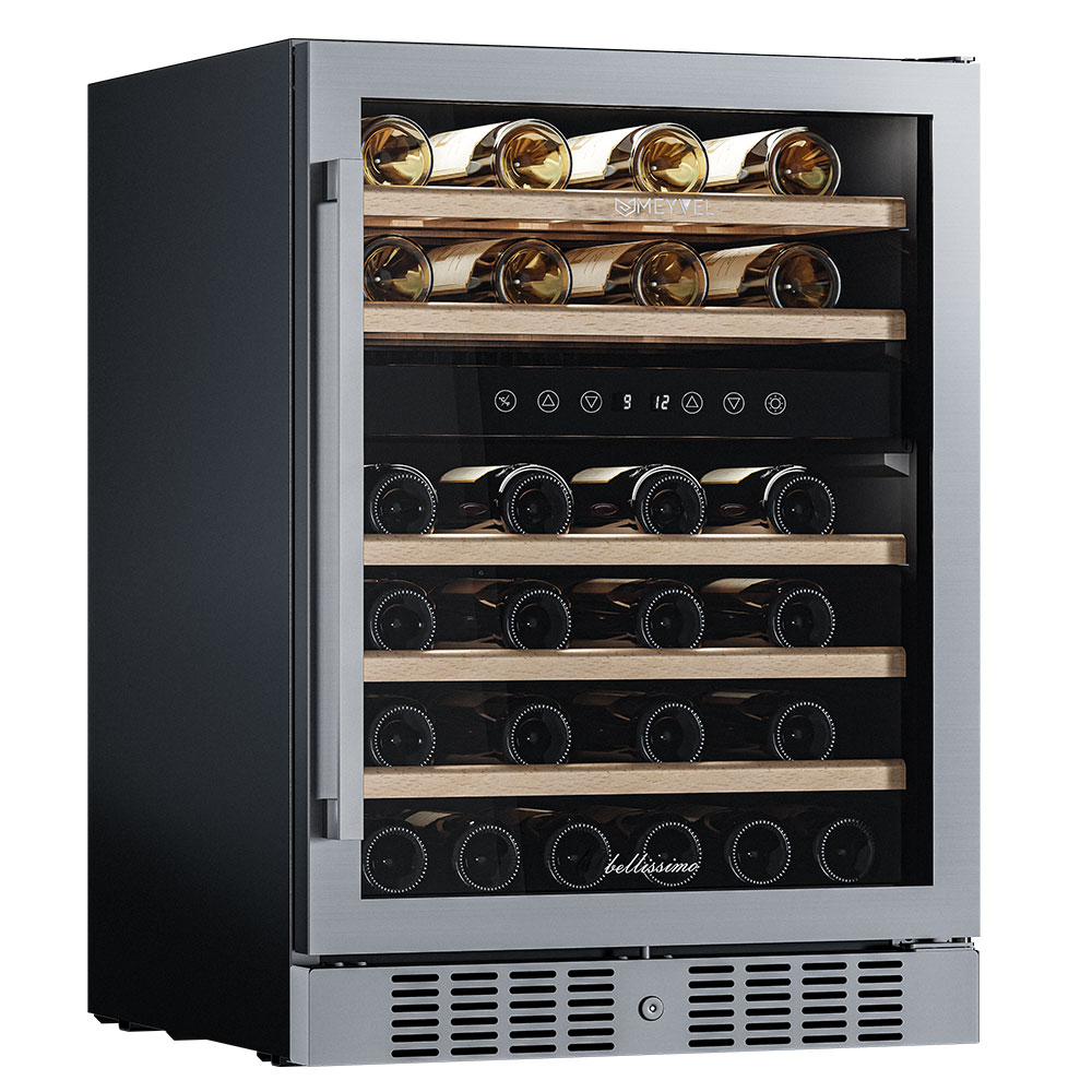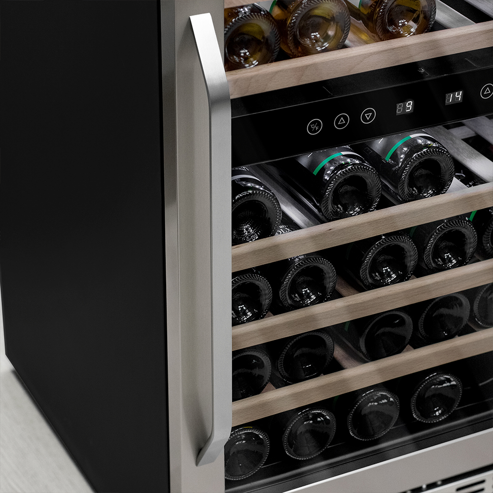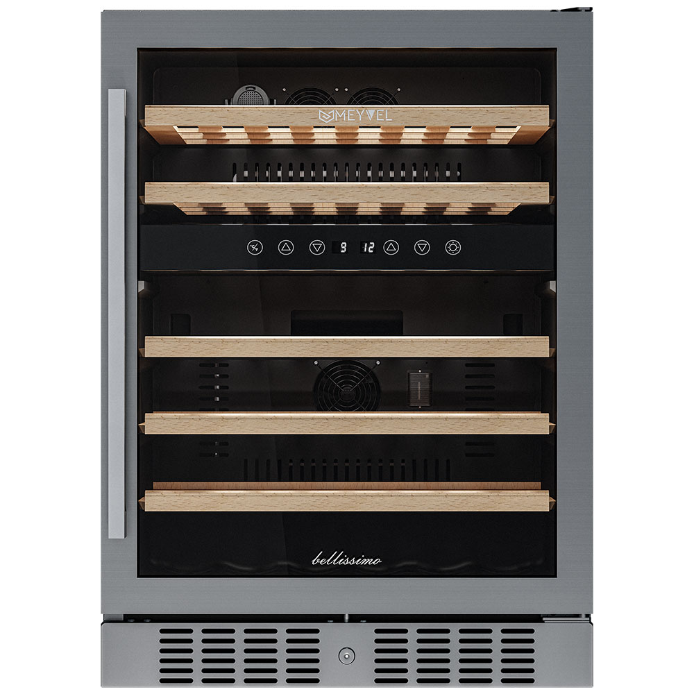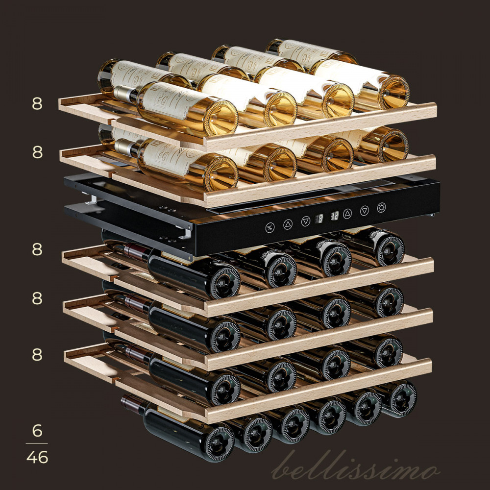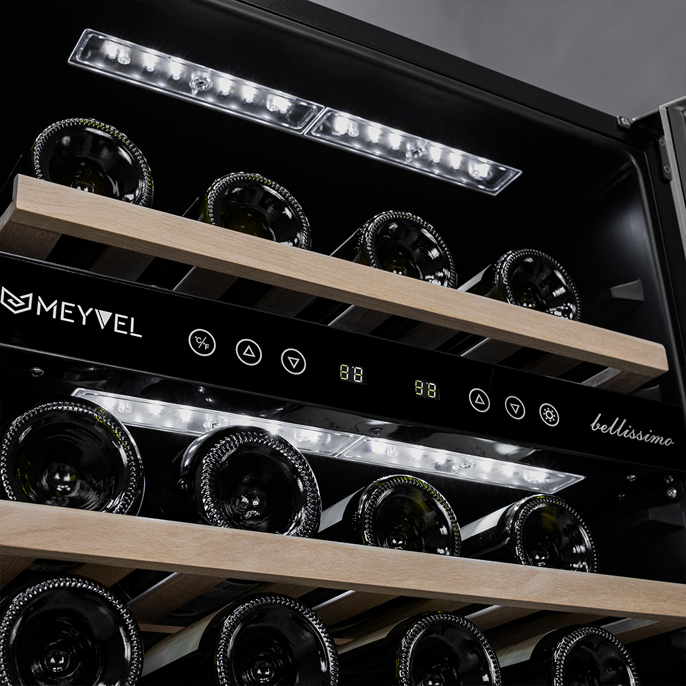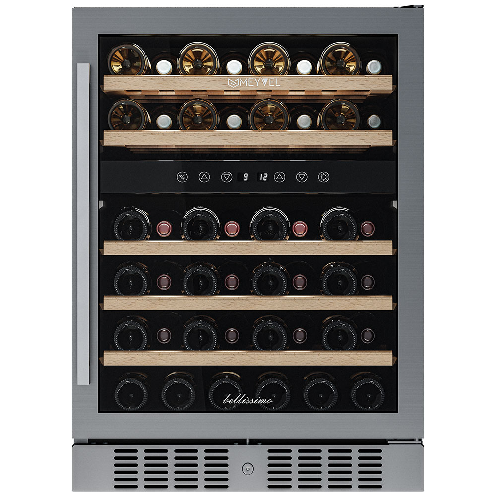 - ОписаниеУцененный компрессорный винный шкаф Meyvel MV46-KST2 Наличие товара и вид дефекта уточняйте у менеджера. На уцененную модель предоставляется стандартная гарантия. Винный шкаф Meyvel MV46-KST2 Модель MV46-KST2 имеет привлекательный внешний вид, сочетающий в себе неподвластное времени очарование натуральных материалов с высокотехнологичными системами сохранения продуктов. Винный холодильник Meyvel MV46-KST2 оснащен дверью с защитой от ультрафиолетовых лучей и отлично подойдет для хранения и созревания различных сортов вин. Динамическая система охлаждения обеспечивает оптимальную температуру для вина и сохраняет необходимую влажность внутри камеры. Универсальный микроклимат Компрессорный винный шкаф Meyvel MV46-KST2 обладает большой вместимостью и способен разместить до 46 бутылок. Располагаются они на полках из массива бука. Внутреннее пространство шкафа разделено на 2 температурные зоны с возможностью настраивать каждую из них (верхняя зона имеет диапазон от +5℃ до +10℃, а нижняя - от +10℃ до +18℃). Холодильник поддерживает влажность в диапазоне 60-80%, как в настоящем винном погребе. Сенсорный дисплей Быстро задавайте необходимую температуру для содержимого и управляйте всеми функциями холодильника с помощью интуитивно-понятного расположения клавиш на сенсорном дисплее. Преимущества винного шкафа Meyvel MV46-KST2 Вместимость 46 бутылок 0,75 л; Две температурный зоны; Температурный режим от +5°C до +18°C; Рамка двери из бесшовной нерж.стали; Память настроек; Удобное сенсорное управление; Автоматическая разморозка; Двойное стекло с УФ-фильтром; Замок для двери; Выдвижные полки из массива бука. Обратите внимание: прежде чем устанавливать винный шкаф, ознакомьтесь с указанными в инструкции показателями напряжения (В) и частоты (Гц) и убедитесь в том, что они совпадают с уровнем показателей в Вашем доме; не наклоняйте винный шкаф более чем на 45°; не устанавливайте винный шкаф вблизи с нагревающимися электроприборами, а также в зоне прямого попадания солнечных лучей; необходимо установить винный шкаф по уровню и отрегулировать зазоры между дверью и мебельным фасадом, чтобы не повредить их. Meyvel оставляет за собой право изменять параметры без предварительного уведомления.