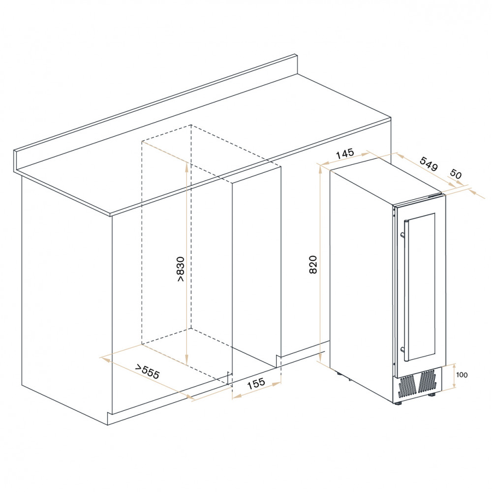 - ОписаниеУцененный компрессорный винный шкаф Meyvel MV8-KST1 Наличие товара и вид дефекта уточняйте у менеджера. На уцененную модель предоставляется стандартная гарантия. Винный шкаф Meyvel MV8-KST1 Модель MV8-KST1 имеет привлекательный внешний вид, сочетающий в себе неподвластное времени очарование натуральных материалов с высокотехнологичными системами сохранения продуктов. Винный холодильник Meyvel MV8-KST1 оснащен дверью с защитой от ультрафиолетовых лучей и отлично подойдет для хранения и созревания различных сортов вин. Динамическая система охлаждения обеспечивает оптимальную температуру для вина и сохраняет необходимую влажность внутри камеры. Универсальный микроклимат Компрессорный винный шкаф Meyvel MV8-KST1 обладает большой вместимостью и способен разместить до 8 бутылок. Располагаются они на держателях из массива бука. Внутреннее пространство шкафа имеет возможность настраивать температуру в диапазоне от + 5°C до +18°C. Холодильник поддерживает влажность в диапазоне 60-80%, как в настоящем винном погребе. Сенсорный дисплей Быстро задавайте необходимую температуру для содержимого и управляйте всеми функциями холодильника с помощью интуитивно-понятного расположения клавиш на сенсорном дисплее. Преимущества винного шкафа Meyvel MV8-KST1: Вместимость 8 бутылок 0,75 л; Стильный внешний вид; Возможность встроить под столешницу; Температурный режим от +5°C до +18°C; Память настроек; Удобное сенсорное управление; Автоматическая разморозка; Двойное стекло с УФ-фильтром; Устанавливается отдельно; Внутреннее освещение; Держатели из массива бука. Обратите внимание: не наклоняйте винный шкаф более чем на 45°; не устанавливайте винный шкаф вблизи с нагревающимися электроприборами, а также в зоне прямого попадания солнечных лучей; после установки винного шкафа необходимо проверить, насколько ровно Вы настроили ножки, потому как использование винного шкафа, установленного под углом, может привести к поломке дверцы. Meyvel оставляет за собой право изменять параметры без предварительного уведомления.