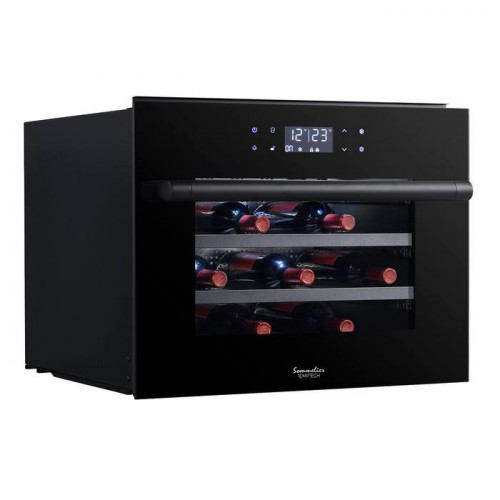 Винный шкаф Temptech (Темптех) SOMZ45SB - это прекрасное дополнение к кухонному интерьеру, в котором удобно хранить любимые напитки. Вместительность холодильника составляет 24 бутылки вина типа Бордо, которые удобно уложены на 3 деревянных выдвигающихся полки. Система управления снабжена сенсорными кнопками и цифровым дисплеем.