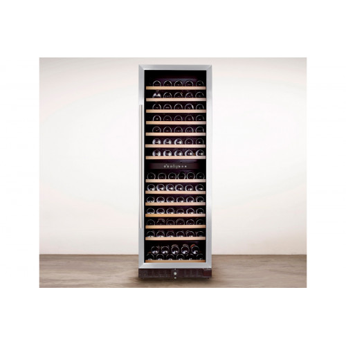 - Винный шкаф большого размера из линейки Premium. Имеет фасад из нержавеющей стали, две температурные зоны (5-12°C, 12-20°C) и место для 166 бутылок.