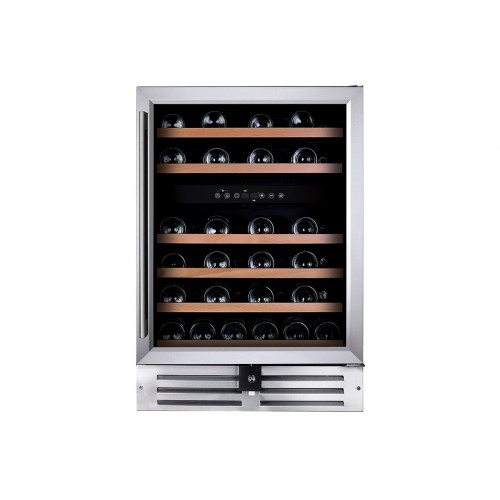 - Небольшой винный шкаф для простой установки на кухне из линейки Premium. Имеет фасад из нержавеющей стали, две температурные зоны (5-12°C, 12-20°C) и место для 46 бутылок.