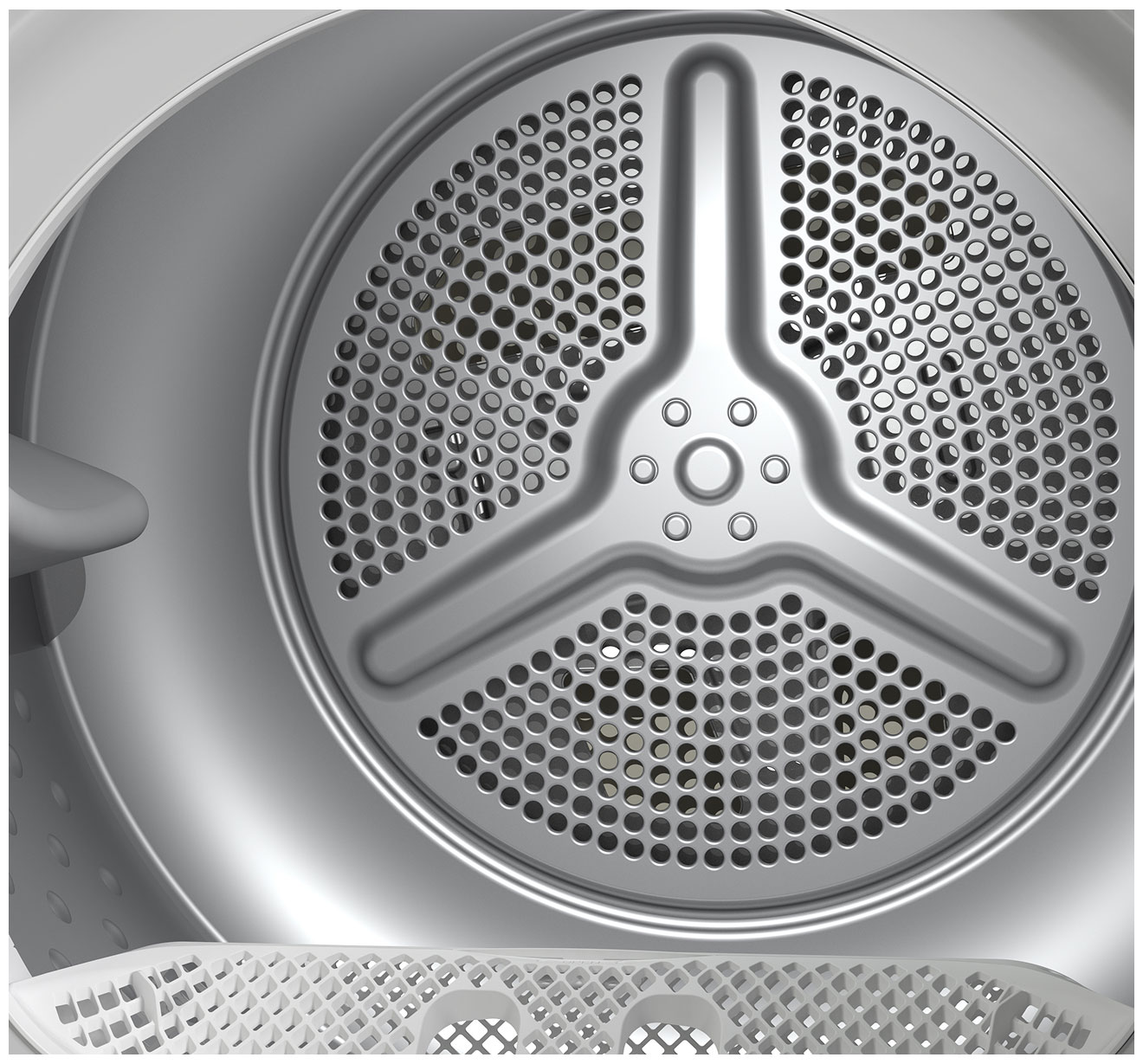 - Электронное управление и разнообразие программ: Интуитивно понятная панель управления позволяет легко выбрать подходящий режим сушки для разных типов тканей. Многочисленные программы обеспечивают бережное обращение с бельем и идеальный результат .