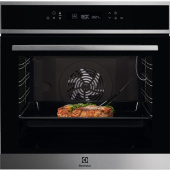 Духовой шкаф Electrolux EOE7C31X имеет термозонд с помощью него вы можете убедиться в приготовлении мяса. Есть каталитическая очистка, происходит нагрев до 250 градусов, после жир и грязь расщепляются, вам остается только протереть устройство. Благодаря режиму быстрый нагрев на 40 % времени быстрее происходит разогрев, для приготовления.