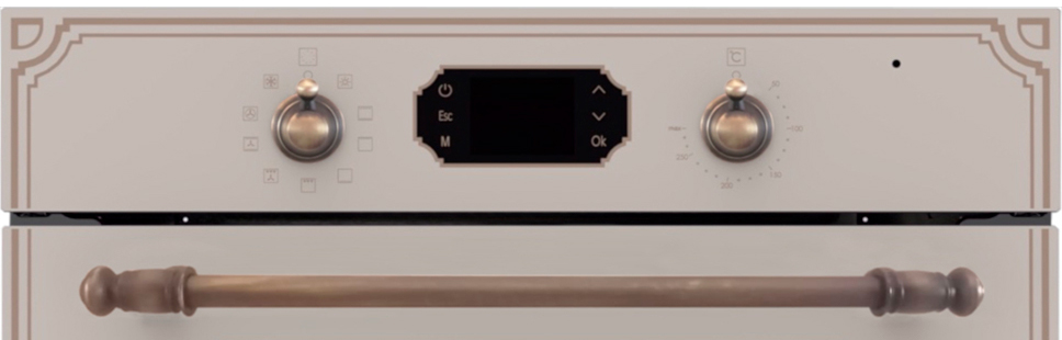 Духовой шкаф Korting OKB 4911 CRGB бежевого цвета выполнен в ретро стиле, элегантный дизайн прибора позволит вписать его в классический интерьер кухни. Сенсорный дисплей поможет выбрать нужный режим готовки и настроить работу таймера. Телескопические направляющие дают возможность выдвинуть горячий противень, не вынимая его, гарантируя безопасную и комфортную эксплуатацию.