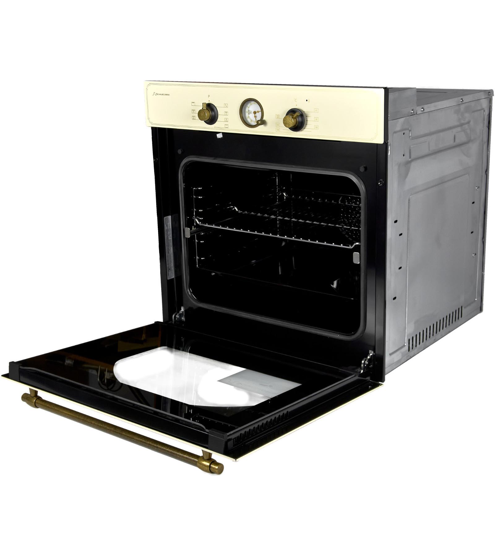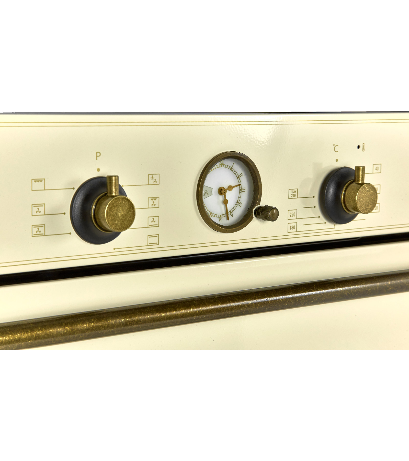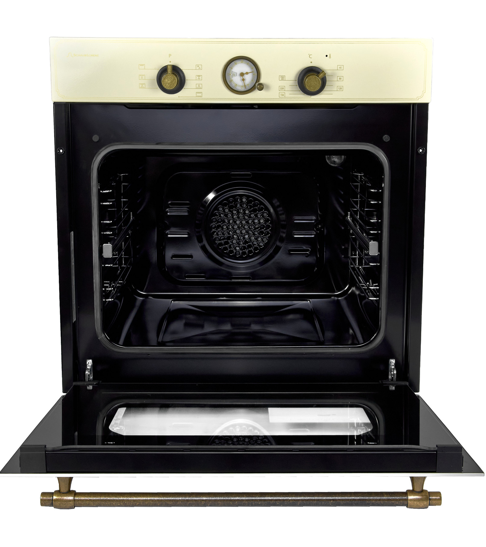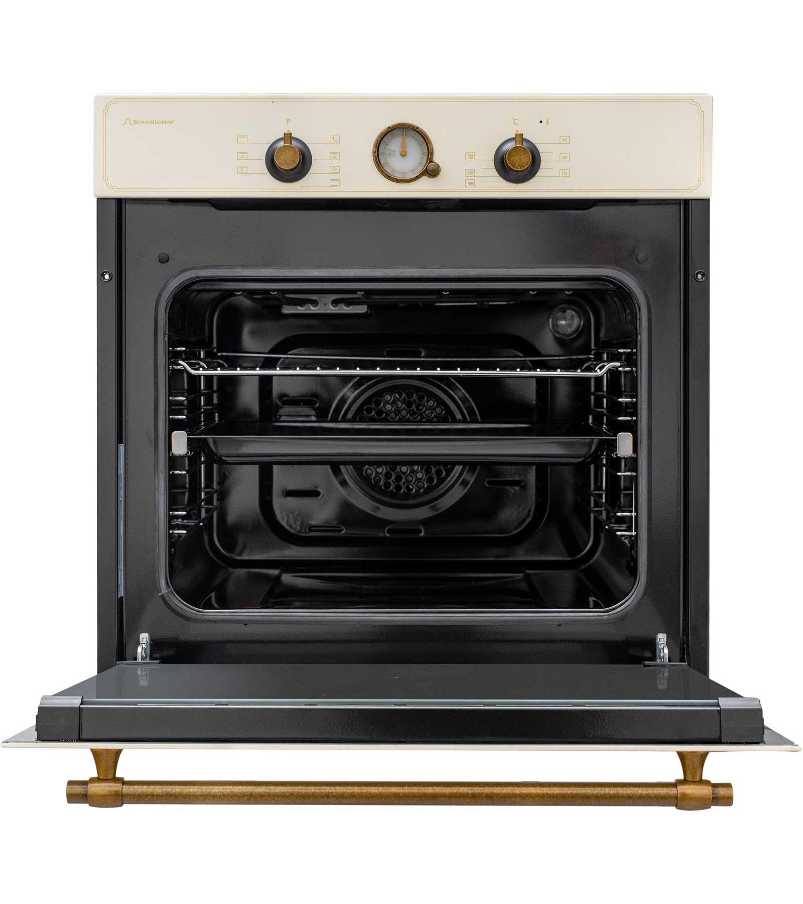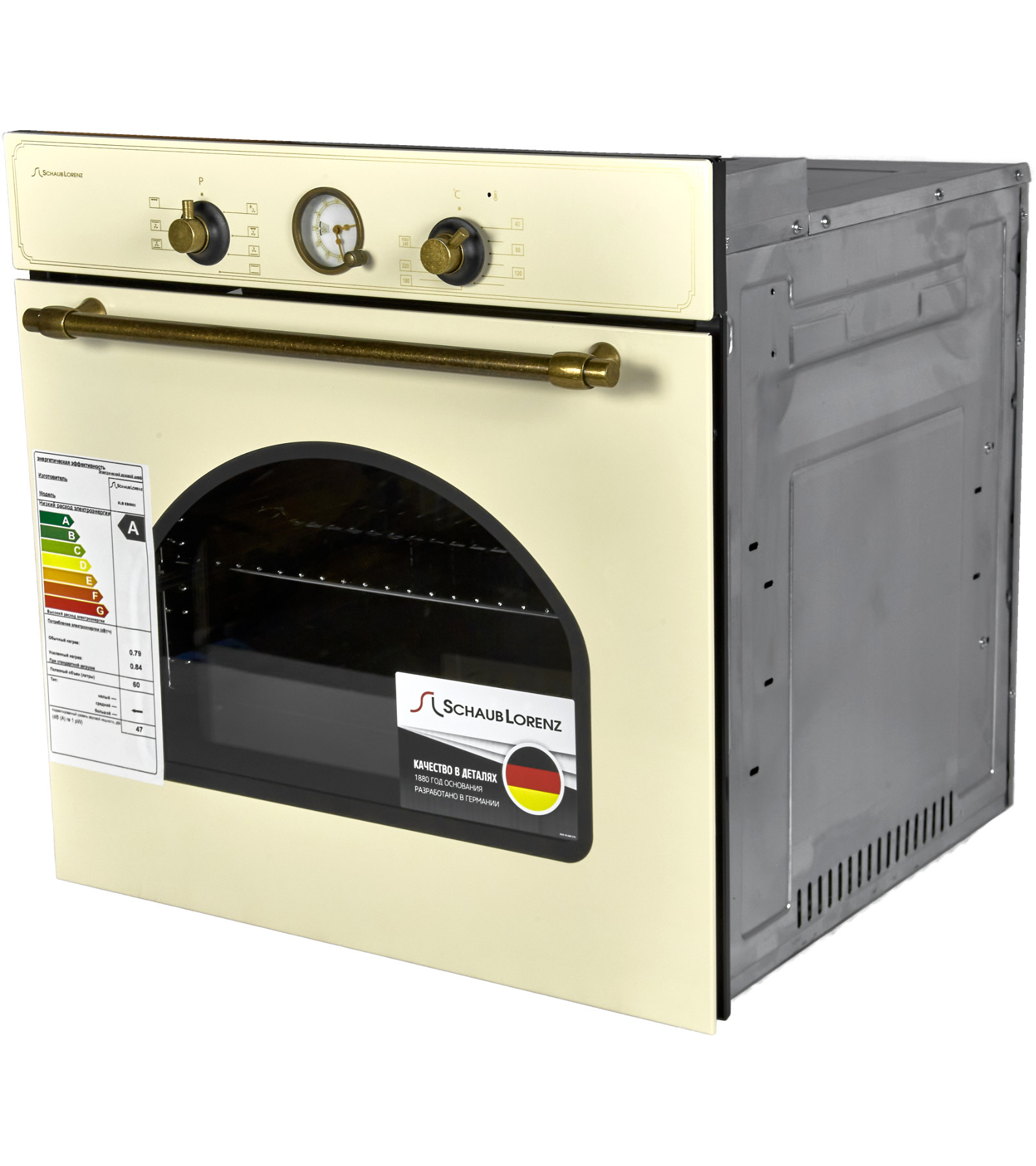 - ОписаниеМультифункциональный электрический духовой шкаф Schaub Lorenz SLB EB6860. Модель в ретро-дизайне со стеклом в форме отверстия традиционной дровяной печи дополнена латунной фурнитурой под старину, двумя поворотными переключателями и аналоговыми часами. Необычный стильный дизайн модели создаст особую атмосферу на вашей кухне.