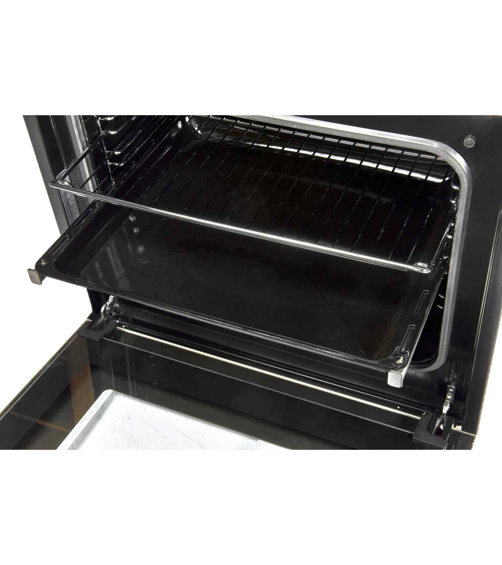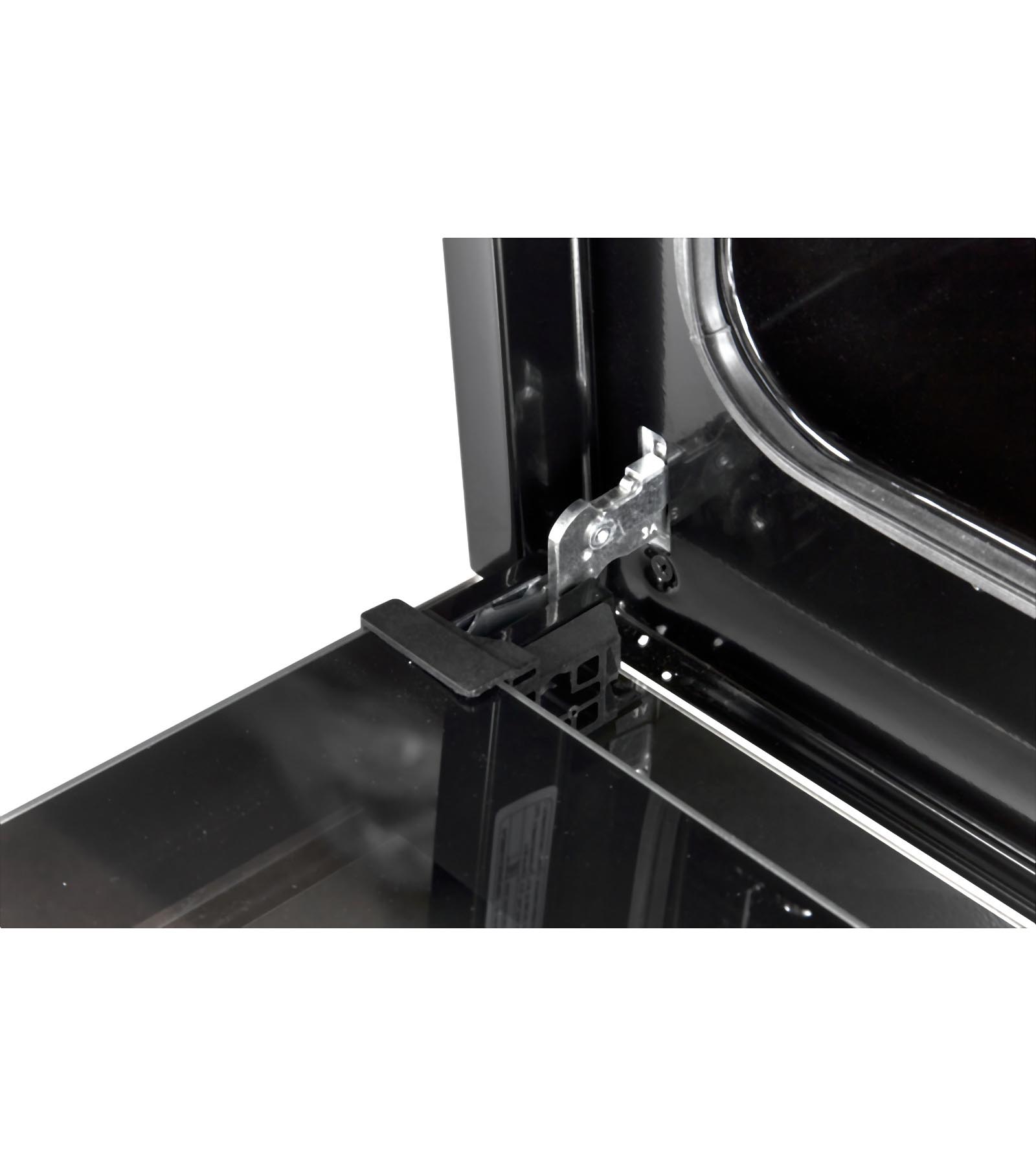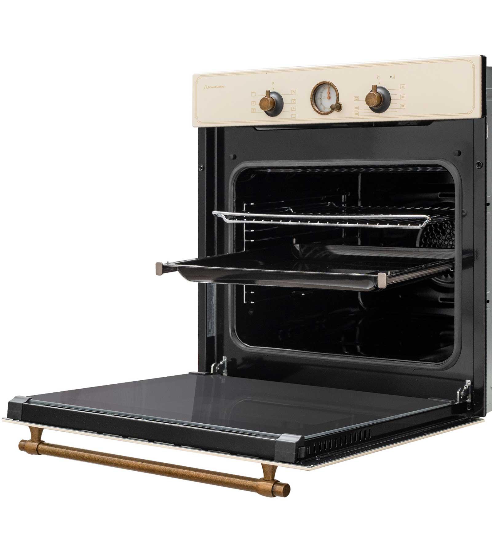 Фасад из металла покрыт эмалью, устойчивой к механическим повреждениям. Особые высокопрочные петли обеспечивают бесшумное и плавное закрытие дверцы духовки при толчке любой силы.Телескопические направляющие позволят выдвигать противень в одно прикосновение.