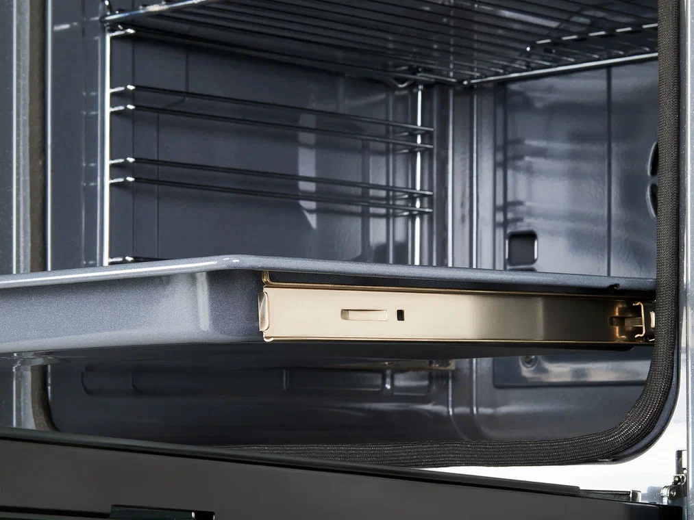 - Телескопические направляющие: Легкий доступ к блюдам: Наличие телескопических направляющих позволяет легко выдвигать противни, обеспечивая удобный доступ к блюдам и облегчая процесс приготовления.
