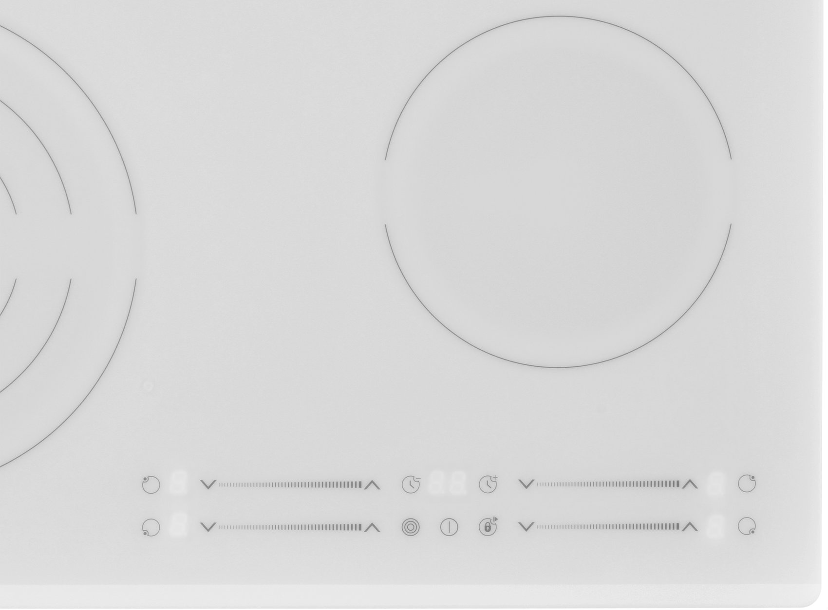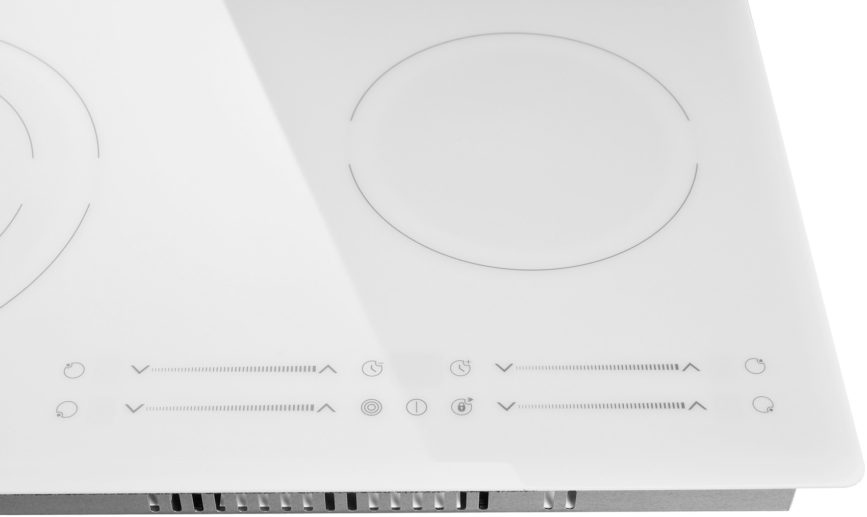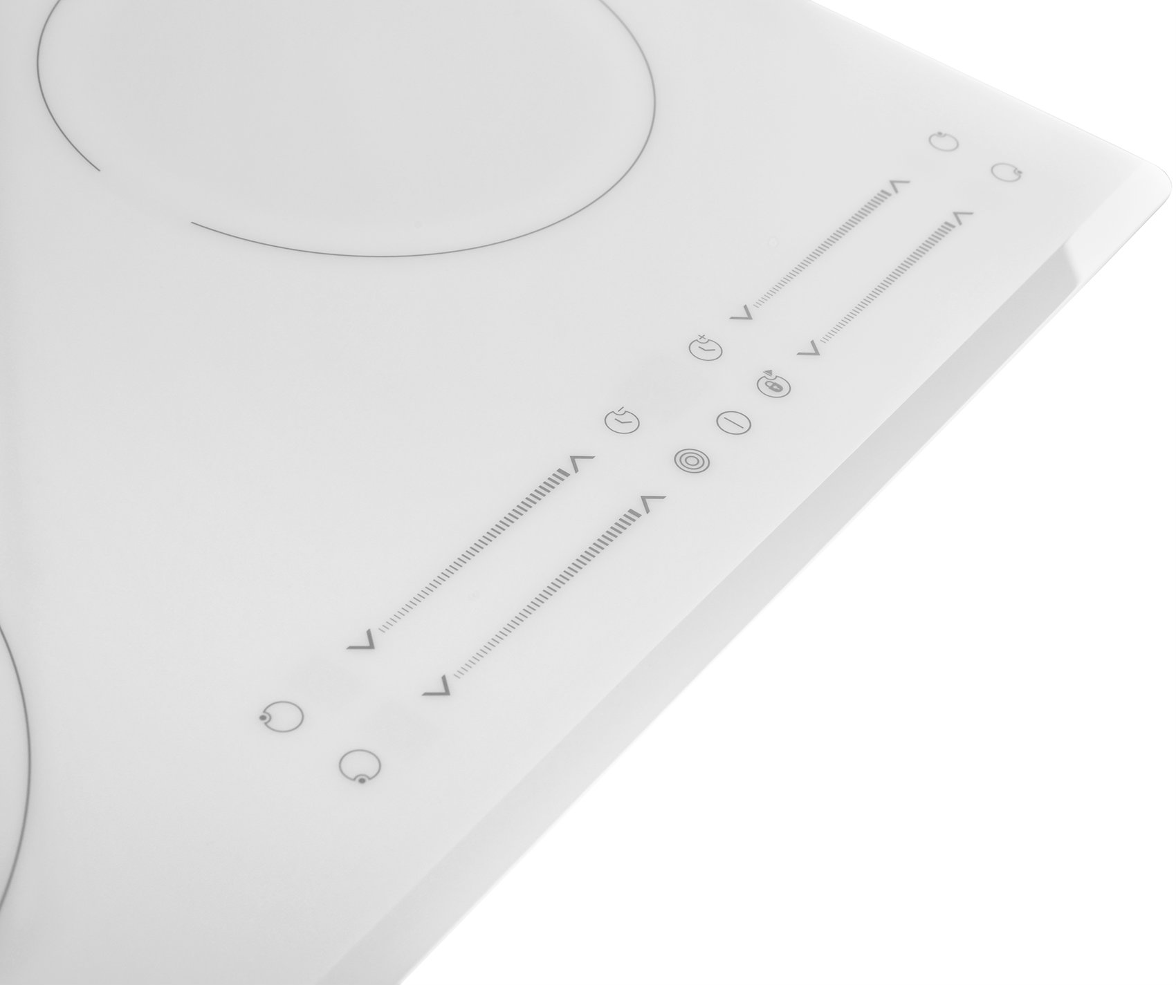 - Элегантный белый дизайн: варочная панель станет стильным акцентом на вашей кухне, придав ей светлый, воздушный и современный вид.