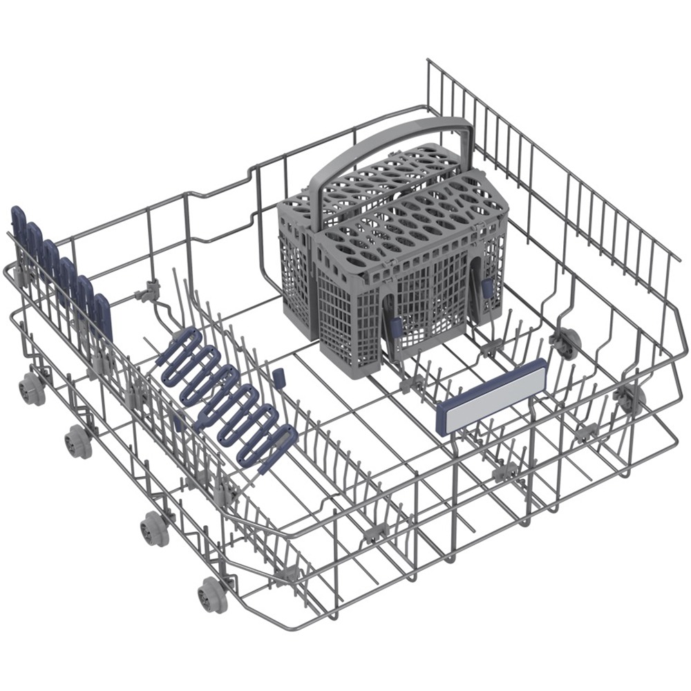 Вместимость до 16 комплектов — аргумент для большой семьи и активной готовки. Корзины класса Premium продуманы для разной утвари: верхняя корзина регулируется по высоте даже при полной загрузке, есть отдельная полка и корзина для столовых приборов. Для тонких бокалов предусмотрена интегрированная защита стекла.