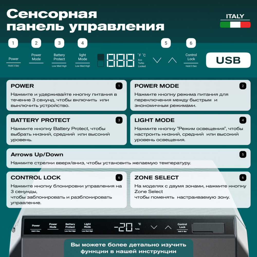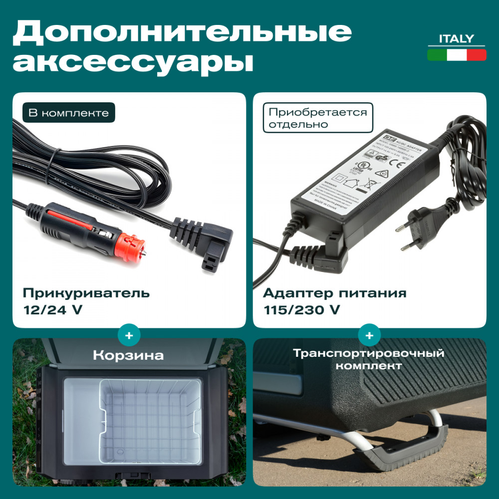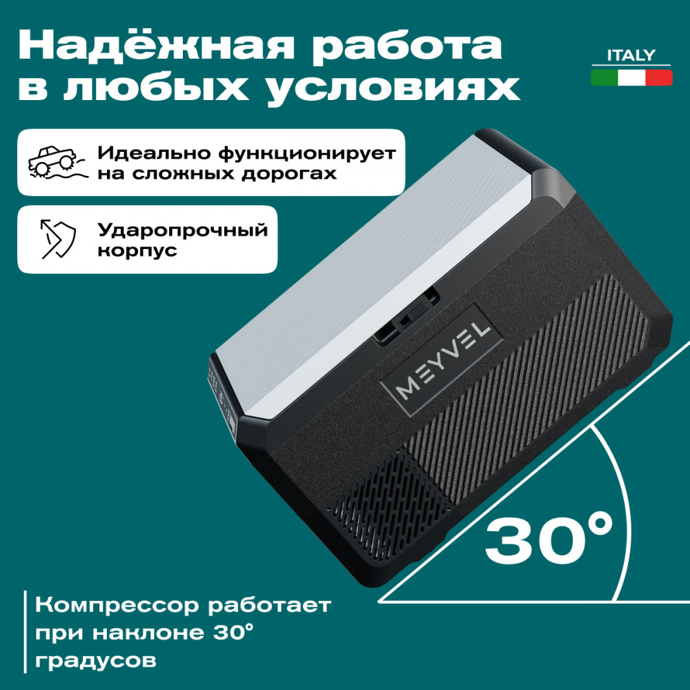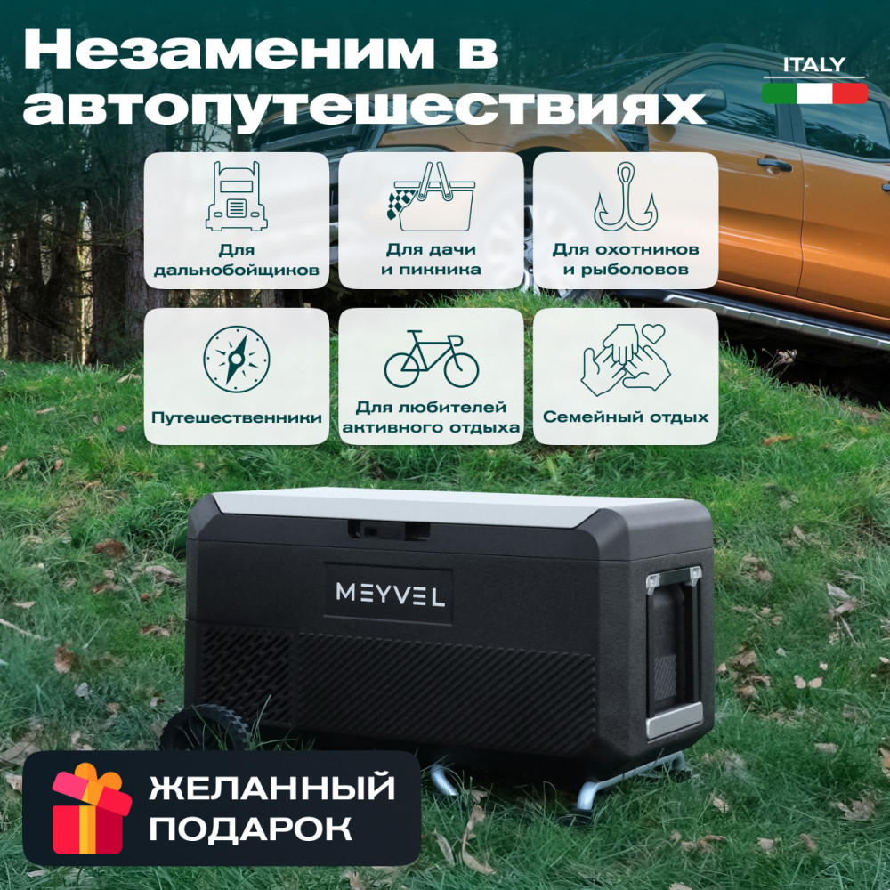 - ОписаниеКомпрессорный автохолодильник Meyvel AF-PRO41 Компрессорный переносной автохолодильник Meyvel AF-PRO41 представляет собой идеальное решение для тех, кто ищет надежное и функциональное устройство для хранения еды и напитков в дороге, на пикниках или в условиях кемпинга. Вместимость однокамерного холодильника, оборудованного корзиной для удобного размещения продуктов, составляет 41 л. Универсальность питания и широкий диапазон температуры Одна из ключевых особенностей Meyvel AF-PRO41 заключается в его универсальности — он работает от различных источников питания. Устройство подключается к прикуривателю автомобиля (12 и 24 В), становясь идеальным компаньоном в путешествиях на дальние расстояния. При желании, используя приобретаемый отдельно адаптер, холодильник также можно подключить к стандартной сети 220 В, что расширяет его возможность использования в любых условиях — будь то на даче, в гостях или в походе. Функциональность модели AF-PRO41 впечатляет, особенно скорость и стабильность поддерживаемой температуры, которая варьируется от +20 до -20°С. Благодаря этому получится не только охлаждать напитки до освежающей температуры, но и использовать автохолодильник для глубокой заморозки продуктов, что станет отличным вариантом в длительных поездках. Система автоматически поддерживает заданные настройки, гарантируя, что съестное будет храниться в правильных условиях. Устойчивость к вибрациям и тихая работа Компрессор работает под углом наклона до 30°, что делает устройство устойчивым к неровным дорожным условиям и перемещению по пересеченной местности. Уровень шума составляет менее 35 дБ, гарантируя тихую работу и не отвлекая внимание от наслаждения окружающей природой, что особенно важно во время отдыха. Разъемы USB и расширенные настройки Meyvel AF-PRO41 также порадует пользователей своими современными технологическими решениями. Холодильник оснащен двумя USB-разъемами и разъемом Type-C, чтобы одновременно заряжать несколько мобильных устройств или других гаджетов. Управление устройством осуществляется с помощью сенсорной панели, яркость которой можно регулировать в зависимости от окружающего освещения. Более того, панель управления блокируется, чтобы предотвратить случайные изменения настроек. Внутреннее освещение создает удобные условия для поиска нужного продукта, так как его яркость также поддается регулировке, что особенно актуально в темное время суток. Meyvel AF-PRO41 имеет два режима работы: экономичный и турбо. Первый снижает потребление энергии в тех случаях, когда не требуется высокая мощность охлаждения, тогда как второй порадует скоростью достижения заданной температуры. Стильный и практичный дизайн Компактный размер холодильника и наличие ручки для переноски делают его удобным в транспортировке, что является важным аспектом для активных путешественников. В дополнение, пользователи могут приобрести транспортировочный комплект, который значительно упростит переноску. Дверца устройства имеет защелку, обеспечивающую надежное закрытие, а сбоку предусмотрен сетчатый карман. Он идеально подходит для хранения бутылок, снеков или других мелочей, которые могут понадобиться в пути. Преимущества автохолодильника Meyvel AF-PRO41 вместимость 41 л; подключается к прикуривателю; поддерживает температуру от +20 до -20°С функция глубокой 
