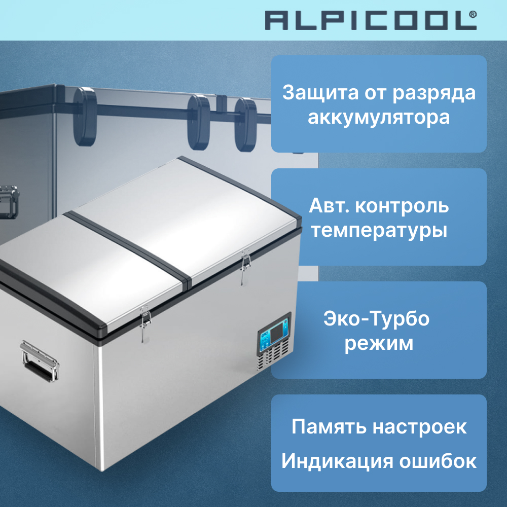ОписаниеКомпрессорный автохолодильник Alpicool BCD125 (12/24) Автохолодильник Alpicool BCD125 (12/24) обеспечит Вас максимальным комфортом, в любых условиях. Благодаря износостойкому корпусу из нержавеющей стали, компрессор надёжно защищён от внешних механических повреждений, крышка закрывается на петельные защёлки, что исключает случайные открытия, даже при сильной тряске. Перечисленные особенности дают весомое преимущество при езде по бездорожью. Автохолодильник можно использовать на катере и лодках. Даже при больших наклонах в 40° автохолодильник не теряет свою производительность. Работа осуществляется через прикуриватель или розетку (адаптер на 220В приобретается отдельно). Интуитивно-понятная панель управления с информативным дисплеем позволяет настроить рабочую температура в диапазоне от +20 до -20 градусов, выбрать один из режимов работы "MAX" (дает возможность максимально быстро заморозить содержимое) или "ECO" (устройство расходует меньше энергии, сохраняя свежесть продуктов), настроить уровень защиты от разрядки аккумулятора. Так же можно установить мобильное приложение и осуществлять все настройки с телефона, через Bluetooth. Важным отличительным преимуществом модели Alpicool BCD125(12/24) является наличие двух камер, с отдельной настройкой температуры в каждой из них. Что даёт возможность одновременно охлаждать и замораживать продукты. Автомобильный холодильник Alpicool BCD125(12/24) эффективно замораживает и охлаждает продукты. Модель станет отличным выбором для профессиональных охотников и рыболовов, а так-же будет приятным приобретением для большой семьи. Минимальный уровень шума позволит вам спокойно отдохнуть, а наличие под рукой свежих продуктов — набраться сил для следующего путешествия. Для комфортного ориентирования по содержимому в ночное время суток, инженеры фабрики Alpicool установили в модель безопасное светодиодное освещение, такая технология менее затратна и не нанесёт вреда Вашим продуктам. Отличительные особенности износостойкий стальной корпус; внутренний объём – 125 литров; питание 12/24 В; широкий диапазон температур от +20 °C до -20 °C; две отдельные камеры, с независимой настройкой температур; охлаждение, заморозка, глубокая заморозка; защита от разрядки аккумулятора автомобиля; максимальный угол наклона компрессора 40°; яркое и экономичное светодиодное освещение; память настроек; панель управления с информативным дисплеем; ручки по бокам для удобной переноски;