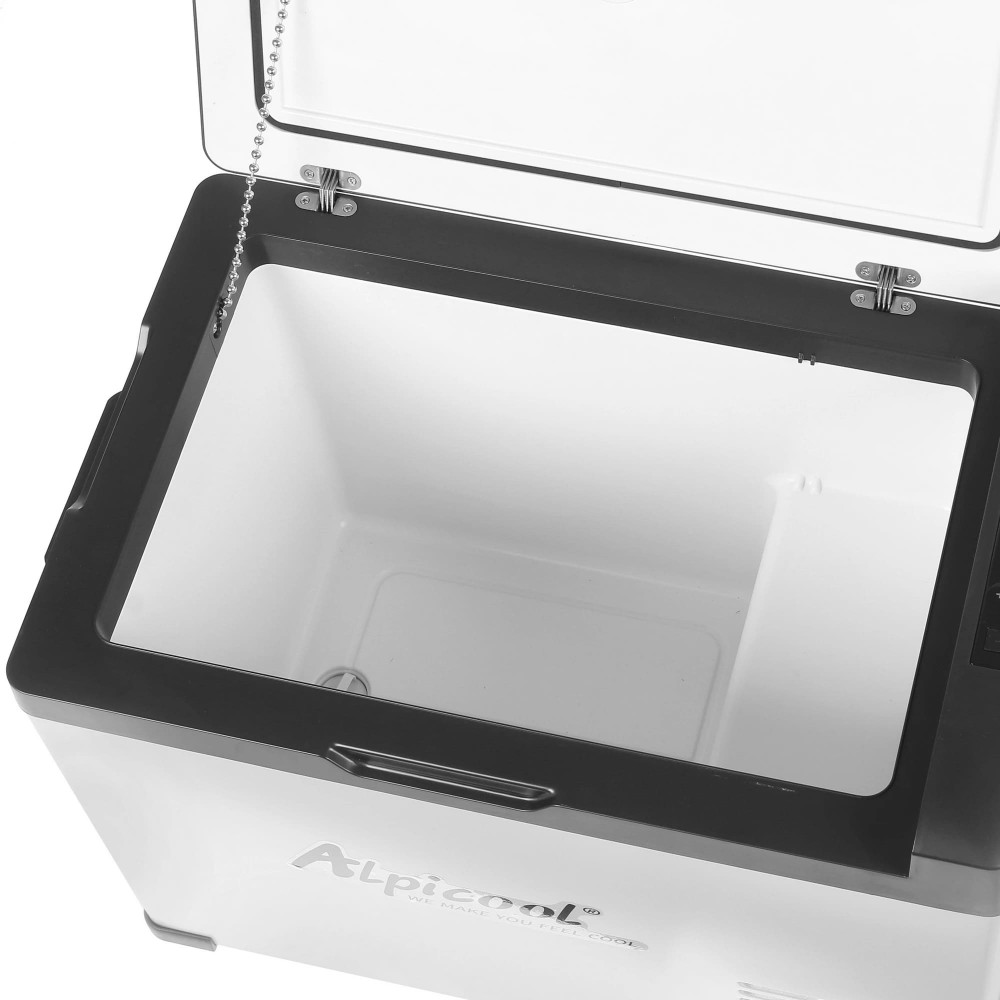 ОписаниеКомпрессорный автохолодильник Allpicool C40 представляет собой компактное холодильное устройство объемом 40 л в твердом сером противоударном корпусе, незаменимое в деловых и развлекательных поездках на любые расстояния. Модель снабжена встроенными в корпус ручками для удобства при переносе, реверсивной дверцей, положение которой можно менять по своему усмотрению. Магнитный замок обеспечивает герметичность внутренней камеры. Автомобильный холодильник Alpicool C40 помещается в багажник, салон или кабину любого легкового и грузового автомобиля, микроавтобуса, пикапа, не занимает много места в палатке, дачном доме, квартире и офисе. Устройство особенно востребовано у профессиональных водителей, рыбаков и охотников, дачников, любителей отдыха с пикниками и шашлыками на природе. Технические особенности После покупки в числе главных преимуществ компрессорного холодильника Allpicool C40 наши клиенты отмечают следующие: понятная панель управления; возможность дистанционного управления посредством мобильного приложения; устойчивость к вибрации при езде по неровному дорожному покрытию; вместительность; надежная защита компрессора от механических повреждений и влаги; защита от разгерметизации; встроенная система освещения камеры охлаждения; широкий диапазон температур – от -20 до +20°C; сохранение вкусовых качеств продуктов и готовых блюд; компактность; долговечность – не менее 10 лет при бережной эксплуатации. Компрессорный автохолодильник Alpicool C40 используется для быстрого охлаждения и заморозки продуктов. В режиме умеренного охлаждения аппарат успешно выполняет функцию хранилища овощей и фруктов. В нем можно держать косметическую продукцию, лекарственные препараты, детское питание, вина, крепкий алкоголь, прохладительные и сладкие газированные напитки. Комплектация В комплект входят: автохолодильник серого цвета; провод AC 3,5 м; провод DC 1,5 м; гарантийный талон; адаптер 110/220 В; инструкция по эксплуатации и обслуживанию; картонная упаковка с вкладышами из пенопласта.