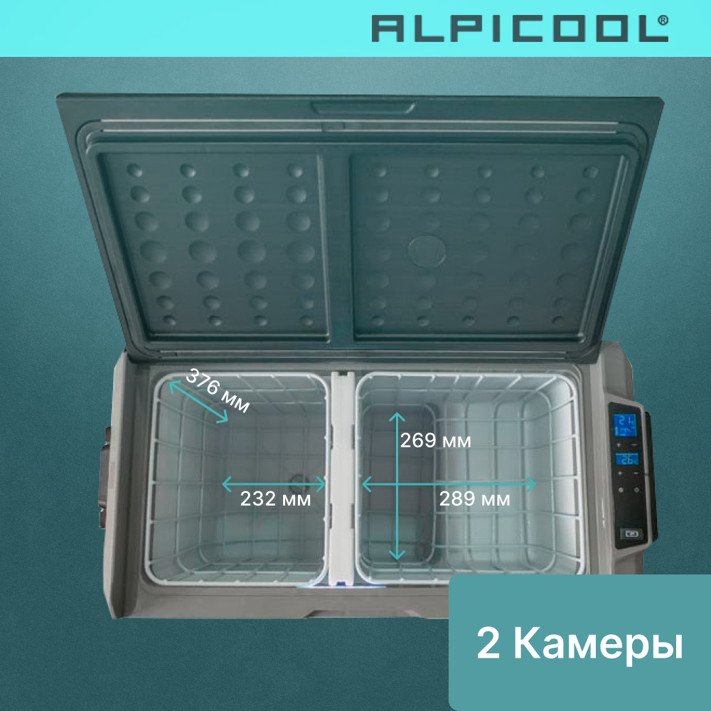 ОписаниеКомпрессорный автохолодильник Alpicool ET50 (12/24) Alpicool ET50 (12/24) - одна из моделей последнего поколения! Стильный и современный компрессорный автохолодильник с внутренним объемом 50 литров, работающий на безопасном и эффективном хладагенте R-134A. Внутреннее пространство данной модели представлено в виде просторного отсека, разделенного на две части, в каждой из которых Вы можете устанавливать необходимую температуру. Отсеки разделяет специальная перегородка, при изъятии которой, внутри холодильника образуется единый температурный режим. Вы можете с легкостью разместить достаточно большое количество продуктов и ёмкостей с напитками внутри каждого отделения. При открытии автохолодильника срабатывает датчик, за счет чего сразу же включается внутреннее освещение, равномерно распределяющее свет на оба отсека (даже при выключенном питании). Данная модель может работать в трех режимах: охлаждение, заморозка и глубокая заморозка. Охлаждение происходит по всем четырем внутренним стенкам отсека, за счет чего Вы можете не переживать за сохранение свежести содержимого – все продукты останутся в их первозданном виде. Обратите внимание, что температура в зоне компрессора должна устанавливаться либо такой же, либо ниже, чем во второй зоне. Рабочая температура автохолодильника может настраиваться и автоматически и поддерживаться в диапазоне от +20 °C до -20 °C. На дне морозильной камеры есть специальное сливное отверстие, закрытое герметичной пробкой. Эта приятная мелочь сделает процесс размораживания и мойки автохолодильника простым и удобным. Дополнительная внешняя батарея позволяет установке работать в автономном режиме. Эта функция крайне удобна в различных случаях, где невозможно произвести зарядку от сети электропитания, например, если Вы решили выбраться на природу – на пикник, рыбалку, отдых с палатками, и у Вас нет возможности находиться рядом с автомобилем, чтобы осуществить зарядку от прикуривателя. Внешняя батарея позволяет автохолодильнику работать без подзарядки около 7 часов. Внешний вид модели Alpicool ET50 (12/24) отвечает всем необходимым требованиям – автохолодильник выполнен в спокойной серой цветовой гамме и оснащён дисплеем повышенной яркости. Благодаря этому данная модель прекрасно подойдет под дизайн любого автомобиля, а показания на дисплее будут хорошо видны даже в солнечную погоду. Рядом с дисплеем находится удобная панель управления, на которой расположены: кнопка включения и выключения; кнопка настройки, с помощью которой можно установить экономичный или максимальный режим работы компрессора, а также один из трёх уровней защиты аккумулятора автомобиля от разрядки; кнопки "+" и "-" для повышения и понижения заданной температуры; разъём USB для питания и зарядки небольших устройств. Крышка ET50 (12/24) – съемная. Это крайне удобная функция, поскольку благодаря ей, процесс извлечения/загрузки продуктов в автохолодильник становится куда более простым и быстрым. Поскольку данная модель относится к серии нового поколения, она оснащена большим количеством современных функций: USB-вход благодаря которому Вы можете подсоединить какое-либо устройство к автохолодильнику, для его работы или осуществления подзарядки;два дисплея, каждый из которых показывает температуру, заданную в разных отсеках; максимальный угол 