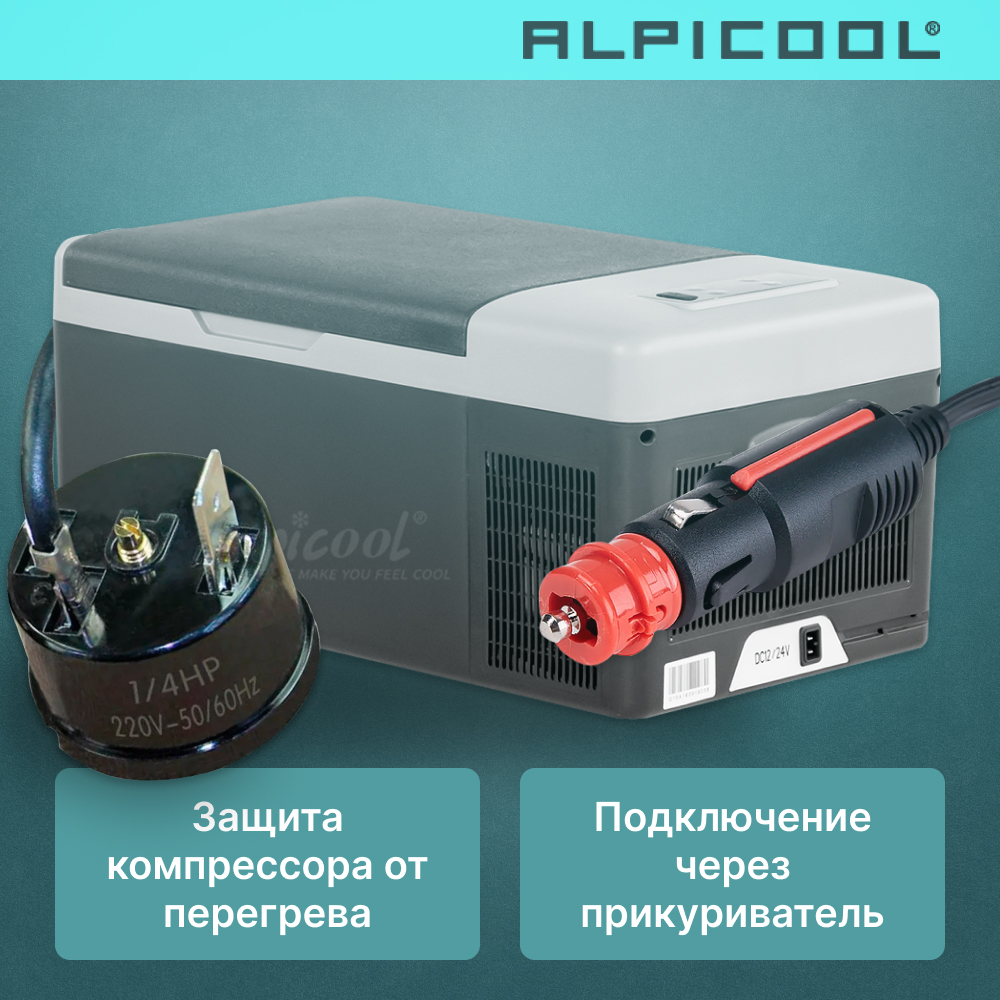 ОписаниеКомпактный автомобильный холодильник Alpicool G22 станет верным спутником в далеких и коротких поездках. Прибор подходит для использования в транспорте, помещении, на открытом воздухе. Универсальность модели G22 обеспечивают два типа подключения – от аккумулятора авто и сети переменного тока. При скромных габаритах аппарат лаконичного дизайна гармонично интегрируется в салон любой легковушки, кемпера или автобуса, кабину грузовика и каюту катера. В быту компрессорный автохолодильник обычно выполняет роль мобильной морозилки, на природе – «скатерти-самобранки». Неприхотливую в обслуживании технику обязательно следует купить профессиональным водителям, дачникам, поклонникам туризма, охоты и рыбалки. Технические особенности Alpicool G22 оснащен тихим эффективным компрессором. Прочный корпус нивелирует вибрации при езде по бездорожью. Система четко поддерживает заданную температуру в выбранном режиме (MAX/ECO). В зависимости от задач пользователя, продукты находятся в прохладе, стандартной или глубокой заморозке. Разработчиками предусмотрено ручное и дистанционное управление. Сенсорная панель понятна на интуитивном уровне. Информацию отображает контрастный дисплей. Контроль работы посредством смартфона обеспечивает фирменное приложение и встроенный в конструкцию Bluetooth-модуль. Функциональность компрессорного автохолодильника Alpicool G22 повышают специальная камера для льда, порт USB для зарядки гаджетов, многоступенчатая защита АКБ и возможность подключения внешнего аккумулятора. Крышка на магнитах и качественная изоляция до минимума снижают теплопотери. Для удобства пользователей предусмотрена подсветка камеры, эргономичные ручки для переноски и сливное отверстие для разморозки. Комплектация Базовый комплект техники включает: автохолодильник Alpicool G22; кабель в прикуриватель транспорта 12/24V; контейнер для кубиков льда (приятный бонус); руководство по эксплуатации; упаковку (картон, пенопласт). Соблюдение рекомендаций производителя обеспечит холодильнику корректную работу без ремонта минимум 10 лет.
