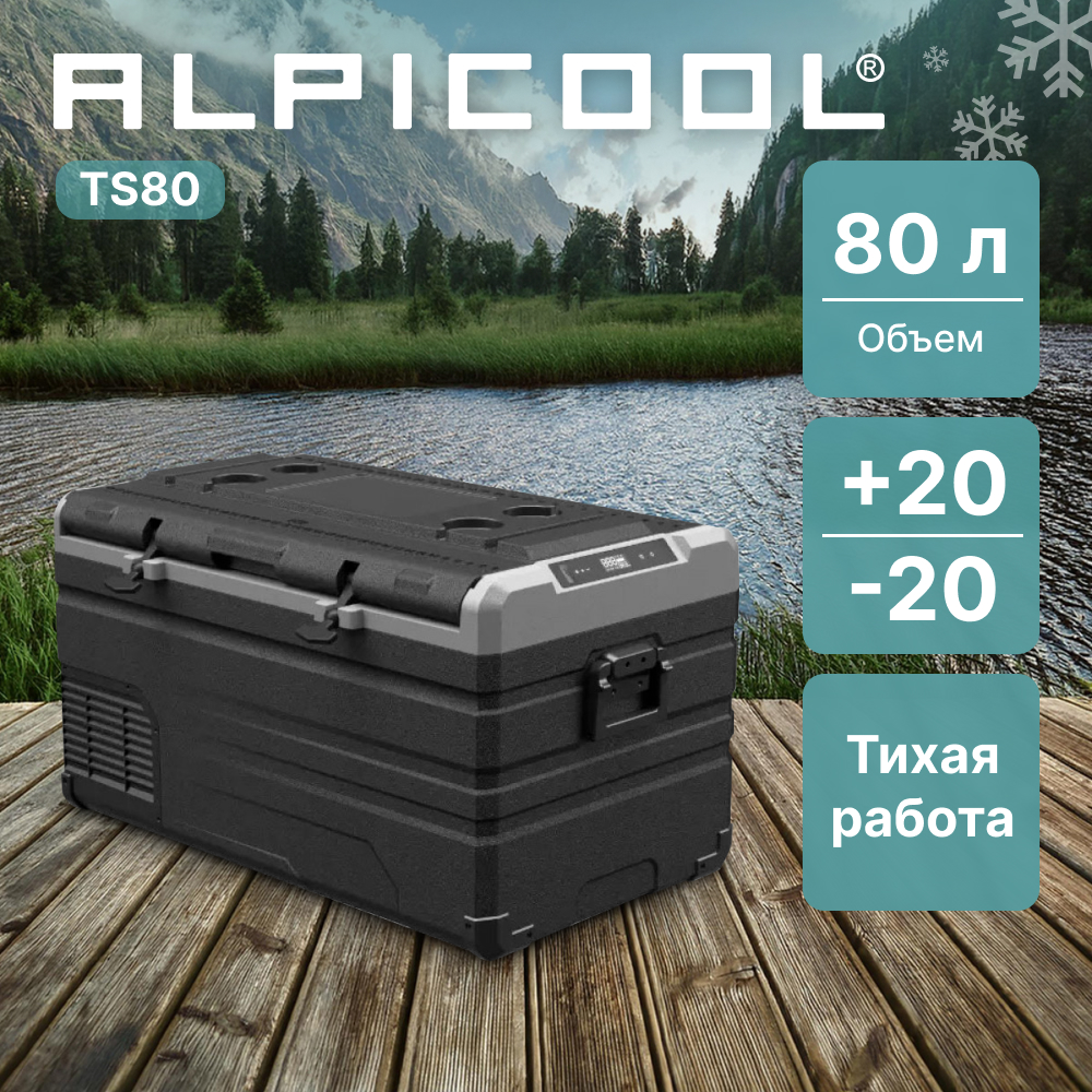 ОписаниеКомпрессорный автохолодильник Alpicool TS80 Компания Alpicool производит автомобильные холодильники и является ведущим производителем в этой области. Модель Alpicool TS80 - это портативный компрессорный холодильник, отлично подходящий для рыбалки. Поскольку серия TS имеет единый регулятор температуры и оснащена светодиодной панелью управления, она идеально подходит для использования в любое время суток. Ключевой особенностью данной модели является тихий высокопроизводительный компрессор, имеющий напряжение 12/24 B с системой защиты от разгерметизации. Благодаря оптимизированному программному обеспечению и регулируемой скорости вращения, Вы можете эффективно поддерживать нужную температуру в дороге и на природе. Управление и режимы работы На корпусе есть сенсорная панель управления с дисплеем, с её помощью можно настроить рабочую температуру от +20 °C до -20 °C, которую автохолодильник будет автоматически поддерживать. Так же можно выбрать один из двух режимов работы. Режим «MAX» (Турборежим) позволит быстро заморозить продукты, благодаря работе на максимальной мощности. Выбрав «ECO» (Экономичный) режим работы, холодильник будет дольше достигать заданного значения температуры, но при этом расходует меньше электроэнергии. Все настройки доступны в мобильном приложении, доступном на Android и на IOS устройствах. В случае каких-либо сбоев в работе, на дисплее отображается код ошибки, что подскажет в чём именно проблема. Удобство использования Модель укомплектована многофункциональной дверью-крышкой, дизайн которой даёт возможность использовать её в качестве стола, ставить до четырёх стаканов с напитками в специальные подстаканники. Так же в крышке автохолодильника есть специальные углубления для установки телефонов и планшетов. Любителей рыбалки несомненно порадует наличие на крышке линейки для измерения улова или других трофеев. В качестве бонуса, на корпусе встроена открывалка для бутылок. Благодаря перечисленным особенностям, холодильник идеально подходит для отдыха на природе. Крышка имеет возможность открытия с любой стороны, без специальной перестановки, достаточно освободить резиновые фиксаторы с нужной стороны. Так же её можно полностью снять. Две съёмные корзины позволят быстро загружать и вынимать продукты из холодильника. Боковые ручки обеспечивают лёгкое и удобное перемещение холодильника. Данная модель подходит для установки не только в легковые автомобили, но и в грузовые, а так же микроавтобусы, катера, автодома и кемперы. Питание осуществляется от прикуривателя (12 или 24 В). Отличительные особенности: Управление через Android/iOS; Усиленная теплоизоляция; Ударопрочный корпус; Измерительная линейка на крышке; Открывалка для бутылок на корпусе; Перенавешиваемая быстросъёмная дверь; Съёмные корзины; Сливная пробка; Подключение через прикуриватель; Работает от солнечных батарей; Встроенный контроллер для подключения солнечной батареи; Возможность установки быстросъёмной батареи; Автоматический контроль температуры; Память настроек (во время отключения электричества или при недостаточном уровне напряжения холодильник возобновит работу после подачи питания, сохраняя ранее заданные настройки); Индикация ошибок на дисплее; Трёхуровневая система защиты от разряда аккумулятора; Защита компрессора от перегрева;