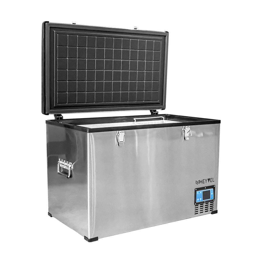 ОписаниеАвтохолодильник Meyvel AF-A135 Итальянская компания MEYVEL была основана в Сицилии. Мы представляем инновационную продукцию, которая отлично подойдет для транспортировки и хранения любимых продуктов и напитков. Так же, благодаря использованию качественных комплектующих и высокотехнологичного производства, наши товары отличаются высокой конкурентоспособностью и отличным качеством. Компрессорный автохолодильник Meyvel AF-A135 – это компактный холодильник, который очень прост в использовании и с легкостью устанавливается в любом удобном месте Вашего транспорта, обеспечивая быстрый доступ к любимым продуктам. Кроме того, для него всегда найдется место не только в грузовых автомобилях, но и в микроавтобусах, катерах, автодомах и кемперах. Ключевой технической особенностью этой модели является тихий высокопроизводительный компрессор, имеющий напряжение 12/24 B с системой защиты от разгерметизации. Благодаря оптимизированному программному обеспечению и регулируемой скорости вращения, Вы можете эффективно поддерживать нужную температуру продуктов и напитков в дороге и на природе. Холодильник имеет одну камеру, которую можно использовать как для охлаждения, так и для обычной / глубокой заморозки (до -20C). В действительности данная модель может создавать и поддерживать температуру даже ниже -20°C (такая температура обычно необходима для перевозки вакцин). Ключевыми техническими особенностями являются: Надёжная фиксация крышки с помощью двух накидных защёлок, что исключает самопроизвольное открывание при движении; Полуавтоматические петли удерживают крышку, когда она открыта и обеспечивают плотное её прилегание в закрытом состоянии, даже если она не закрыта на защёлки; Электронное управление; Экономичное светодиодное освещение; Трехуровневая система защиты от разряда аккумулятора автомобиля; Защита компрессора от перегрева; Точный электронный термостат, с возможностью корректировки и настройки; Дисплей с повышенной яркостью и высоким разрешением; Индикация ошибок на дисплее; Память настроек (во время отключения электричества или при недостаточном уровне напряжения холодильник возобновит работу после подачи питания, сохраняя ранее заданные настройки). Кроме того, данная модель имеет три режима работы: Стандартный - позволяет установить внутри холодильника нужную температуру; Турбо – дает возможность максимально быстро заморозить содержимое; Экономичный - устройство расходует меньше энергии, сохраняя свежесть продуктов. Угол наклона компрессора при работе может составлять до 40 градусов. Экологически чистый хладагент, защищённый испаритель и эффективная изоляция обеспечат безопасную, долгую и надёжную работу автомобильного морозильника. Благодаря использованию качественных комплектующих и высокотехнологичному производству, все холодильники Meyvel обладают высокой эффективностью и надежностью. Дизайнеры и инженеры Meyvel позаботились о Вашем комфорте и разработали полностью русифицированное мобильное приложение. Скачайте его бесплатно в App Store или Google Play Store и подключитесь к своему автохолодильнику Meyvel. Вы можете управлять устройством всего лишь одним касанием. Включайте и отключайте устройство, меняйте и настраивайте температурный режим прямо в дороге.