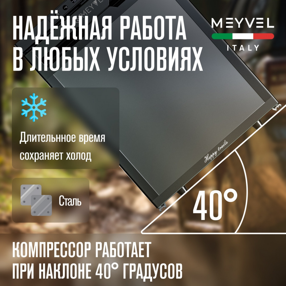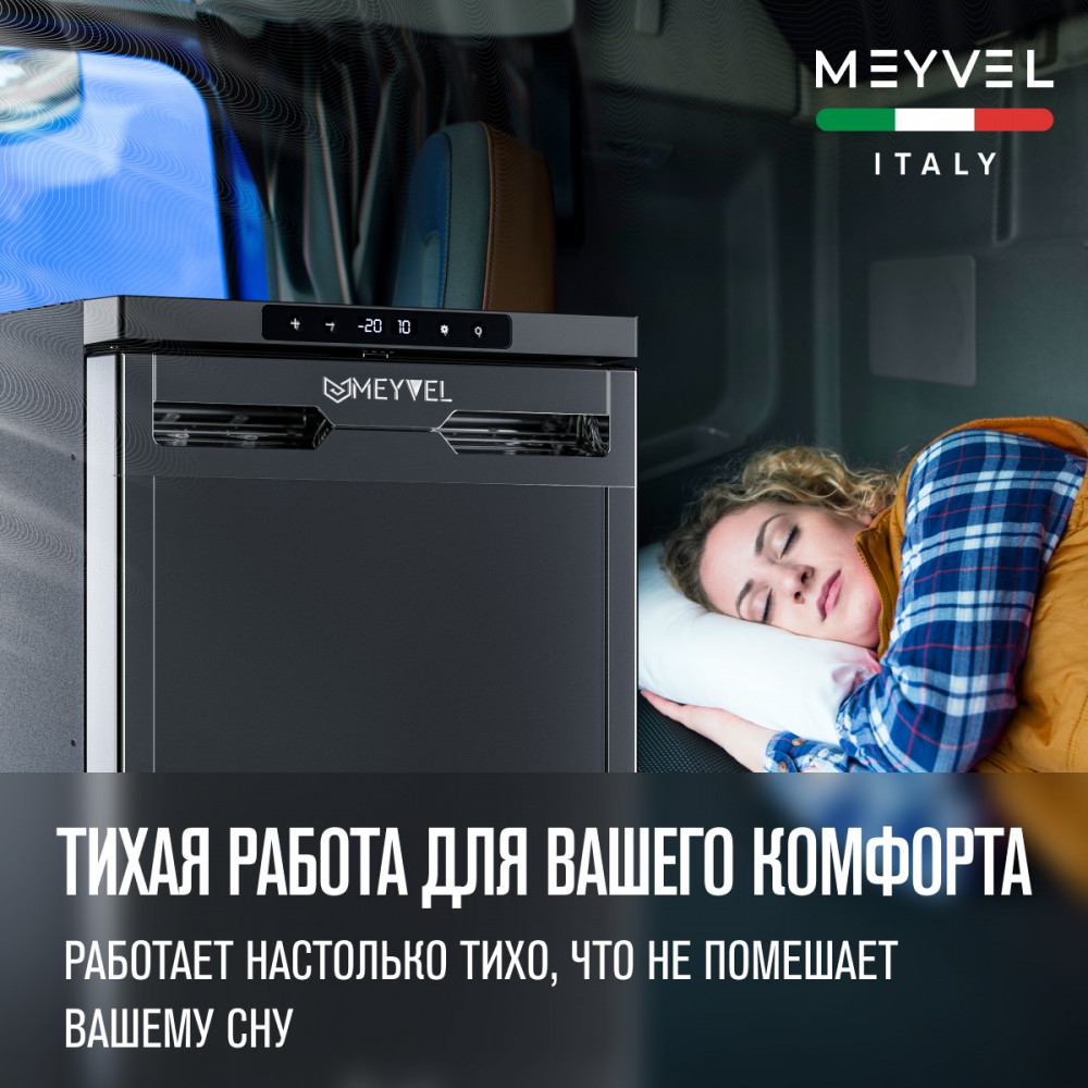 ОписаниеВстраиваемый автохолодильник Meyvel AF-DB40X Благодаря использованию высококачественных комплектующих и современных технологий продукция итальянской компании Meyvel отличается надежностью, продолжительным сроком службы и привлекательным дизайном. Одной из популярных моделей является встраиваемый автохолодильник AF-DB40X, предназначенный для монтажа в автомобилях различных типов, включая микроавтобусы, грузовики, яхты и автодома. Объем холодильника составляет 40 л, а питание может осуществляться от сети с напряжением 12 или 24 В. Внутри устройства две камеры, одна из которых предназначена для охлаждения, а другая - для замораживания продуктов до температуры -20°C. Особенностью модели AF-DB40X является возможность изменения внутреннего пространства холодильника в зависимости от потребностей пользователя. С помощью встроенного компрессора с системой защиты от перепадов давления и возможностью регулировки скорости вращения, пользователь может легко поддерживать необходимую температуру в холодильнике. Преимущества быстрый монтаж; реверсивная дверь; память настроек; трехуровневая система защиты аккумулятора от разряда.