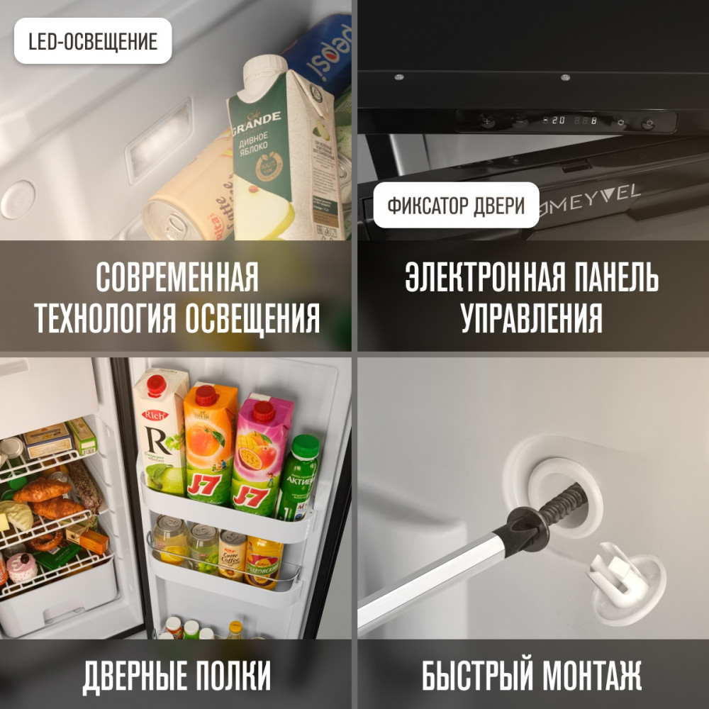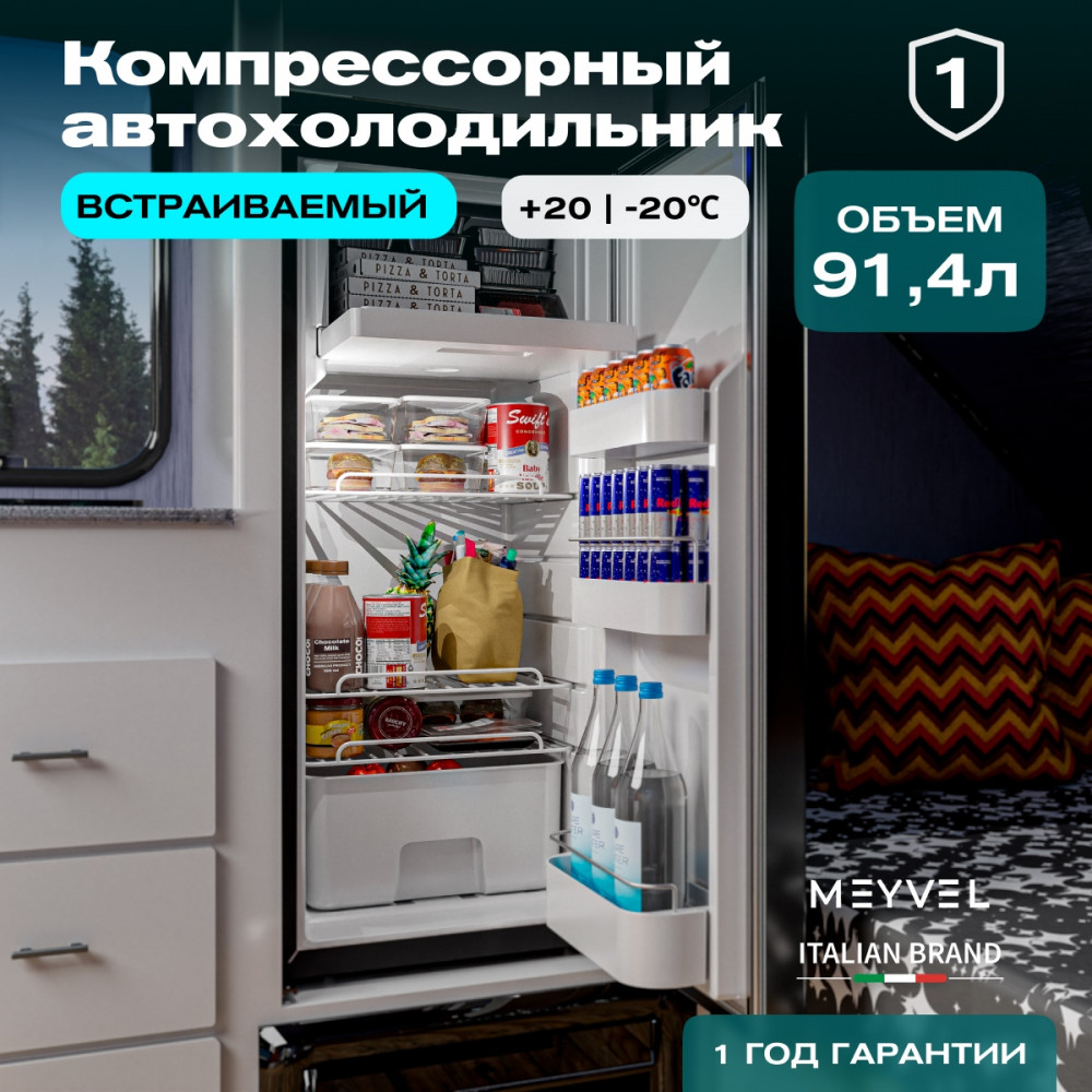 ОписаниеВстраиваемый автохолодильник Meyvel AF-DB90X Благодаря использованию высококачественных комплектующих и современных технологий продукция итальянской компании Meyvel отличается надежностью, продолжительным сроком службы и привлекательным дизайном. Одной из популярных моделей является встраиваемый автохолодильник AF-DB90X, предназначенный для монтажа в автомобилях различных типов, включая микроавтобусы, грузовики, яхты и автодома. Объем холодильника составляет 91 л, а питание может осуществляться от сети с напряжением 12 или 24 В. Внутри устройства две камеры, одна из которых предназначена для охлаждения, а другая - для замораживания продуктов до температуры -20°C. Особенностью модели AF-DB90X является возможность изменения внутреннего пространства холодильника в зависимости от потребностей пользователя. С помощью встроенного компрессора с системой защиты от перепадов давления и возможностью регулировки скорости вращения, пользователь может легко поддерживать необходимую температуру в холодильнике. Преимущества светодиодное освещение; простой монтаж; трехуровневая система защиты от разряда аккумулятора автомобиля; защита компрессора от перегрева; дисплей.