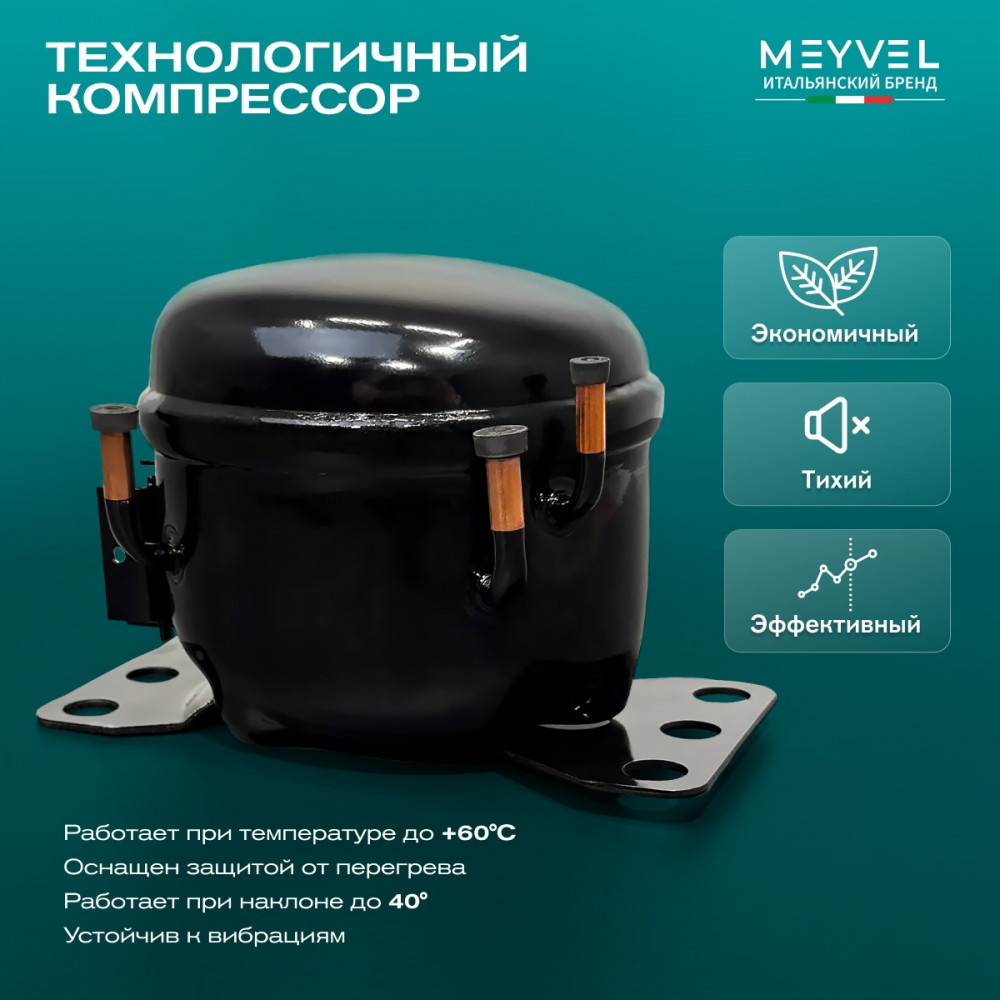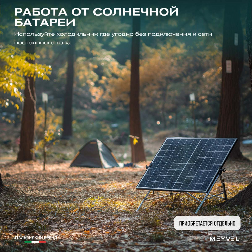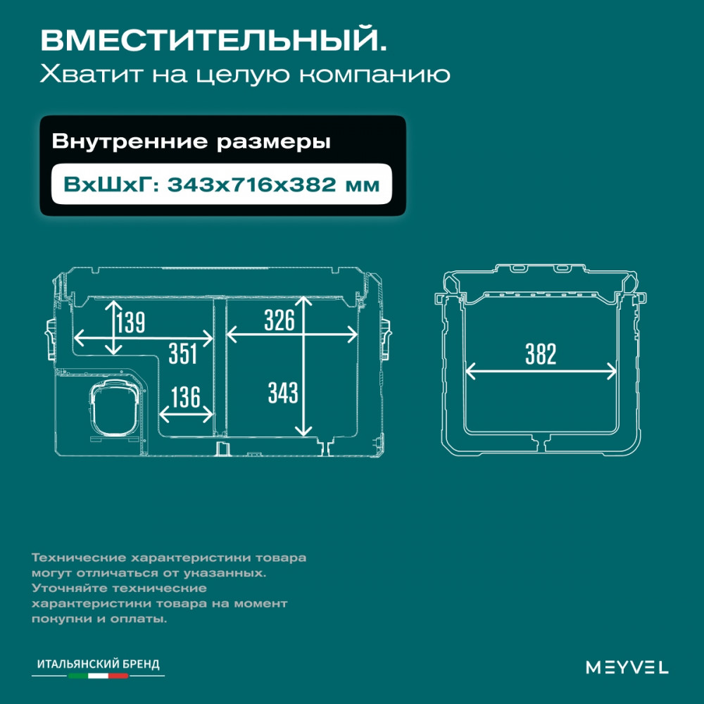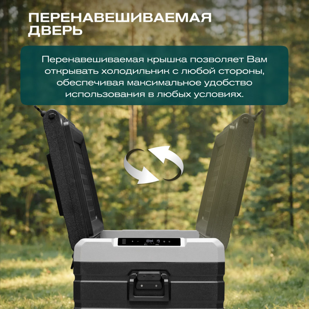 ОписаниеКомпрессорный автохолодильник Meyvel AF-H80DD Итальянская компания MEYVEL разработала инновационную модель автомобильного холодильника AF-H80DD, который отлично подойдет для транспортировки и хранения любимых продуктов и напитков. Автомобильный холодильник Meyvel AF-H80DD имеет большую вместимость и отлично подойдет как для совместных путешествий в кругу семьи, так и для профессиональных охотников и рыболовов. Оснащён тихим высокопроизводительным компрессором, работающим от напряжения 12/24 B, с системой защиты от разгерметизации. Благодаря оптимизированному программному обеспечению и регулируемой скорости вращения, Вы можете эффективно поддерживать нужную температуру в дороге и на природе. Автохолодильник-трансформер Модель Meyvel AF-H80DD оснащена внутренней съёмной перегородкой. При установленной перегородке холодильник делится на два отделения, с возможностью настройки разной температуры, в каждом из них. Настройка температуры осуществляется с помощью сенсорной панели управления или мобильного приложения, с отображением температуры в каждом отделении. При снятой перегородке, холодильник становится однокамерным и на дисплее, отображается общая внутренняя температура. Удобство и многофункциональность. Модель укомплектована многофункциональной дверью-крышкой, дизайн которой даёт возможность использовать её в качестве стола, ставить до четырёх стаканов с напитками в специальные подстаканники. Так же в крышке автохолодильника есть специальные углубления для установки телефонов и планшетов. Любителей рыбалки несомненно порадует наличие на крышке линейки для измерения улова или других трофеев. В качестве бонуса, на корпусе встроена открывалка для бутылок. Благодаря перечисленным особенностям, холодильник идеально подходит для отдыха на природе. Крышка имеет возможность открытия с любой стороны, без специальной перестановки, достаточно освободить резиновые фиксаторы с нужной стороны. Так же её можно полностью снять. Боковые ручки обеспечивают лёгкое и удобное перемещение холодильника. Управление всеми функциями через сенсорную панель управления или через смартфон Сенсорная панель управления имеет дисплей, с отображение всех изменяемых параметров. Дизайнеры и инженеры Meyvel позаботились о Вашем комфорте и разработали мобильное приложени, благодаря которому Вы можете управлять холодильником всего лишь одним касанием. Включайте и отключайте автомобильный холодильник, меняйте и настраивайте температурный режим прямо в дороге. Теперь, когда управление авто холодильником стало простым и понятным, Вам и Вашим близким остается лишь наслаждаться путешествием. Автохолодильник для путешествий Эта модель подходит для установки не только в легковые автомобили, но и в грузовые, а так же микроавтобусы, катера, автодома и кемперы. Питание осуществляется от прикуривателя (12 или 24 В). Благодаря оптимизированному программному обеспечению и регулируемой скорости вращения, Вы можете эффективно поддерживать нужную температуру продуктов и напитков в дороге и на природе. Испаритель располагается на всех четырёх сторонах корпуса и благодаря этому, охлаждение происходит максимально быстро и равномерно. Преимущества автохолодильника AF-H80DD: Трансформируемое внутреннее пространство (1 или 2 камеры); Управление через Android/iOS; Усил