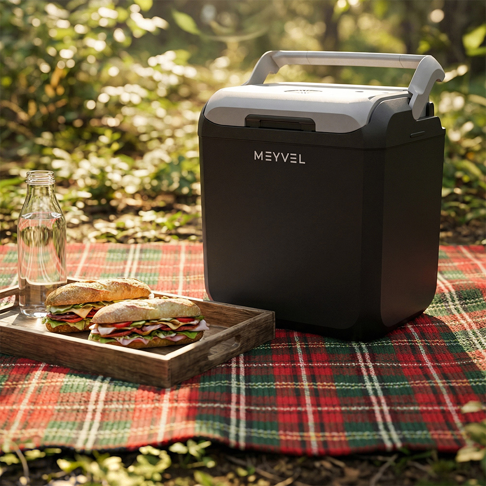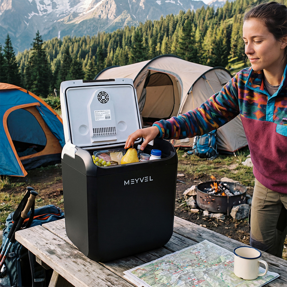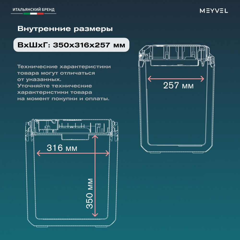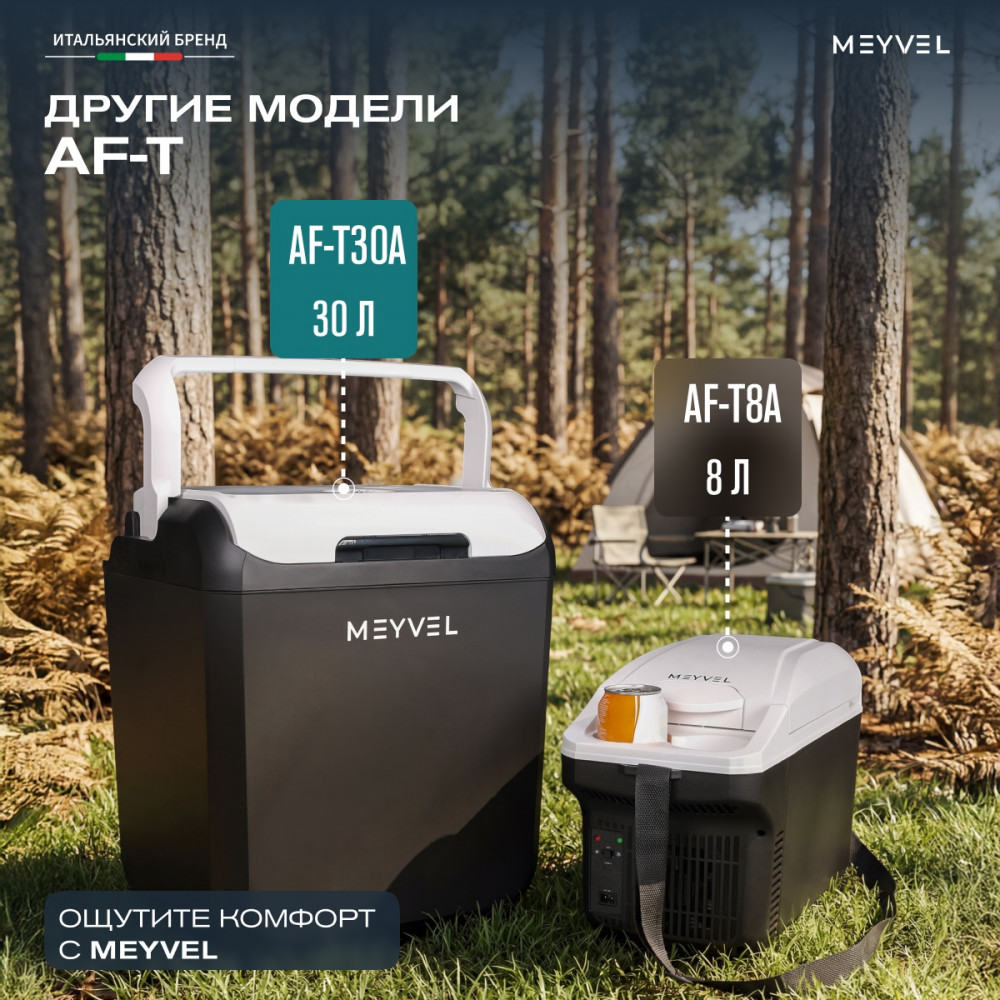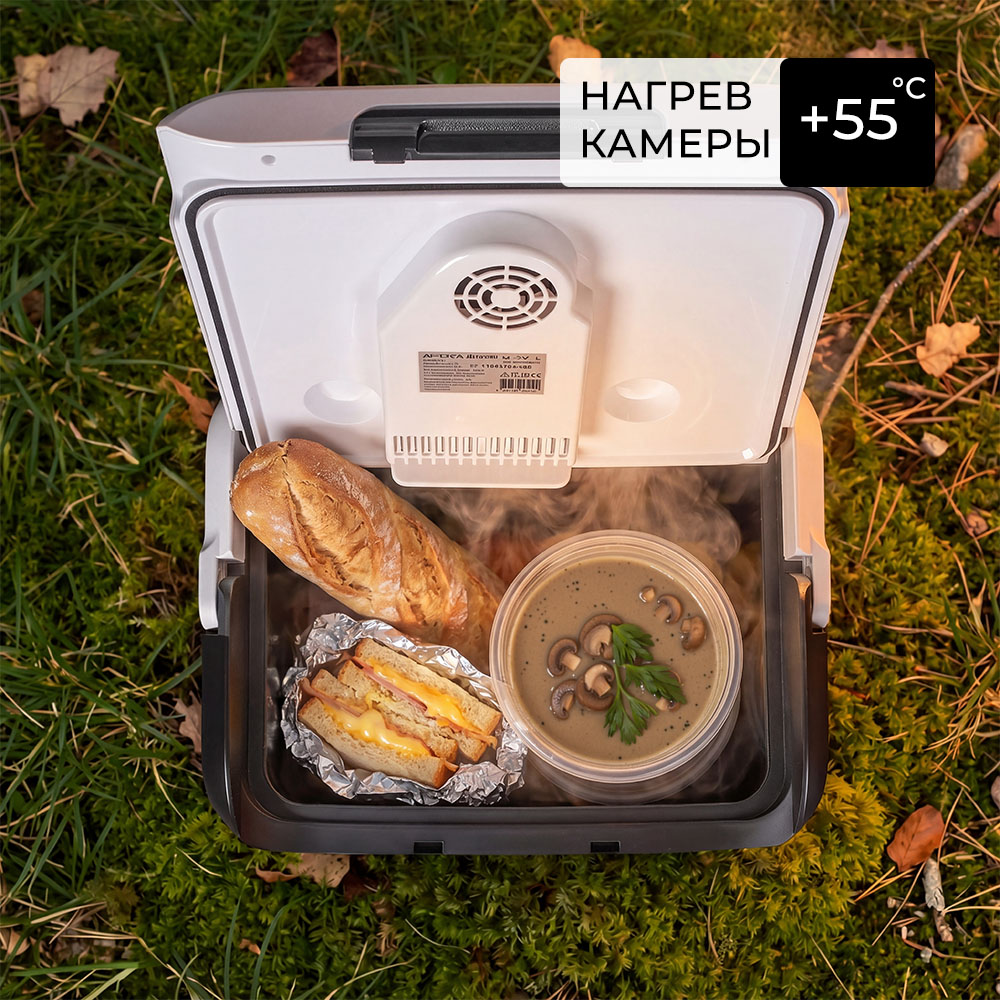 ОписаниеКомпактный термоэлектрический автохолодильник Meyvel AF-T30A (Чёрный) (Black) Автохолодильник Meyvel AF-T30A (Чёрный) (Black) — это небольшой, но удивительно функциональный дорожный мини-холодильник объёмом 30 л. Его берут в поездки, на рыбалку, в путешествия и даже просто на пикники. Он охлаждает напитки, подогревает еду и работает от прикуривателя, что идеально, когда хочется комфорта в любом месте. Формат, который удивляет удобством AF-T30A (Чёрный) (Black) компактен и умещается практически в любом салоне. Но при столь скромных габаритах он остаётся полноценным устройством: внутри достаточно пространства для нескольких бутылок, ланч-бокса или набора перекусов в дорогу. Термоэлектрическая система охлаждения без компрессора, а значит, работает тихо, не вибрирует и не требует обслуживания. Качественная теплоизоляция удерживает температуру, а плотная крышка не пропускает тепло. Вы можете поставить в него охлаждённые продукты, и они спокойно переживут несколько часов в дороге. Два режима: охлаждение и нагрев Meyvel AF-T30A (Чёрный) (Black) универсален: он охлаждает и умеет подогревать. Режим ОХЛАЖДЕНИЕ (COLD) снижает температуру на 18-20°C относительно окружающей среды. Если на улице +30°C, внутри будет около +10-12°C — идеальный режим для напитков, фруктов и лёгких закусок. Режим НАГРЕВ (HOT) прогревает камеру до +55°C. Это удобно, когда хотите довезти горячий обед. Переключатели «охлаждение», «нагрев» и «выкл» расположены на специальной панели. Важный момент, перед сменой режима стоит выключить устройство на 30 минут, чтобы защитить систему от резких перепадов. Питание и безопасность Автохолодильник работает от 12 В, комплектный кабель подключается к прикуривателю. Чтобы не посадить аккумулятор автомобиля, рекомендуется отключать автохолодильник до выключения зажигания. Это простое правило помогает избежать неприятных сюрпризов в дальней дороге, ведь в устройстве не предусмотрена функция защиты аккумулятора от разряда. Вентиляция: важный нюанс эксплуатации Как и все термоэлектрические модели, AF-T30A (Чёрный) (Black) нуждается в циркуляции воздуха. На корпусе предусмотрены решётки, и им нужно пространство: минимум 100 мм от каждой стороны; не закрывать автохолодильник вещами; периодически очищать вентиляционные отверстия от пыли. Это гарантирует стабильную работу и защищает устройство от перегрева. Преимущества Meyvel AF-T30A (Чёрный) (Black) Компактный формат — легко помещается в любом салоне и не занимает лишнего пространства.Ручка для переноски — удобная транспортировка. Два режима работы — охлаждает на 18-20°C от окружающей среды и подогревает до +55°C. Тихая термоэлектрическая система — отсутствие вибраций и минимальный шум при работе. Простое управление — понятная панель с тремя положениями: холод, тепло, выключение.Работа при любом угле наклона. Экономичное питание — работает от 12 В. Универсальность использования — подходит для напитков, перекусов, горячих блюд и хранения продуктов в дороге. Минимальный уход — термоэлектрическая система не требует обслуживания и проста в чистке. Meyvel AF-T30A (Чёрный) (Black) — это простой, компактный, но удивительно практичный автохолодильник. Он сочетает тихую работу, надёжность и возможность как охлаждать, так и подогревать продукты. Для тех, кто много времени проводит в пути или любит комфорт на природе — отличный выбор.