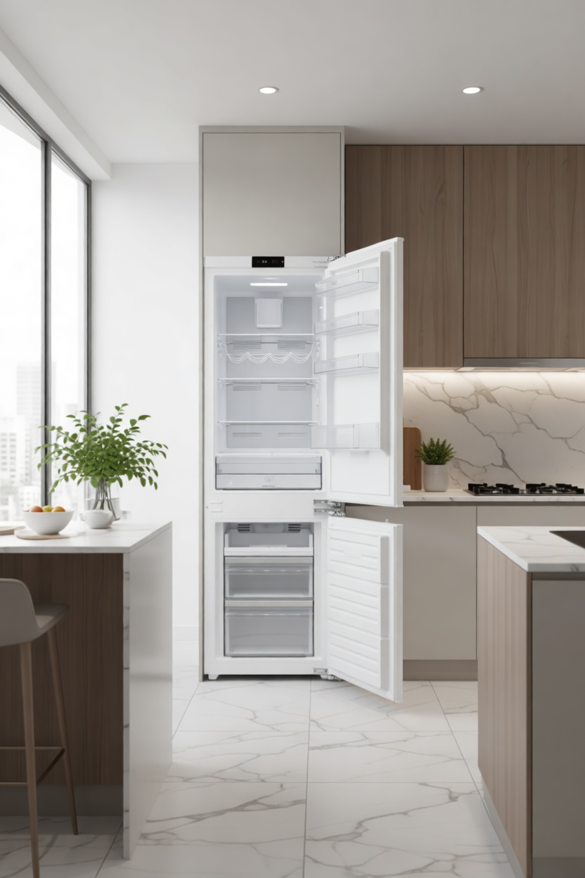 В современном дизайне кухни, где функциональность и эстетика играют важную роль, встраиваемый холодильник становится неотъемлемой частью интерьера. Он позволяет максимально эффективно использовать пространство и создать гармоничный вид кухни. Встраиваемый холодильник Jacky’s JR BW177NFM — отличный выбор для тех, кто ценит стиль, функциональность и надежность. Этот встраиваемый холодильник разработан с учетом современных требований к хранению продуктов, энергоэффективности и удобству использования. Он идеально впишется в любой кухонный гарнитур, обеспечивая оптимальное хранение ваших продуктов и подчёркивая элегантность вашей кухни.
