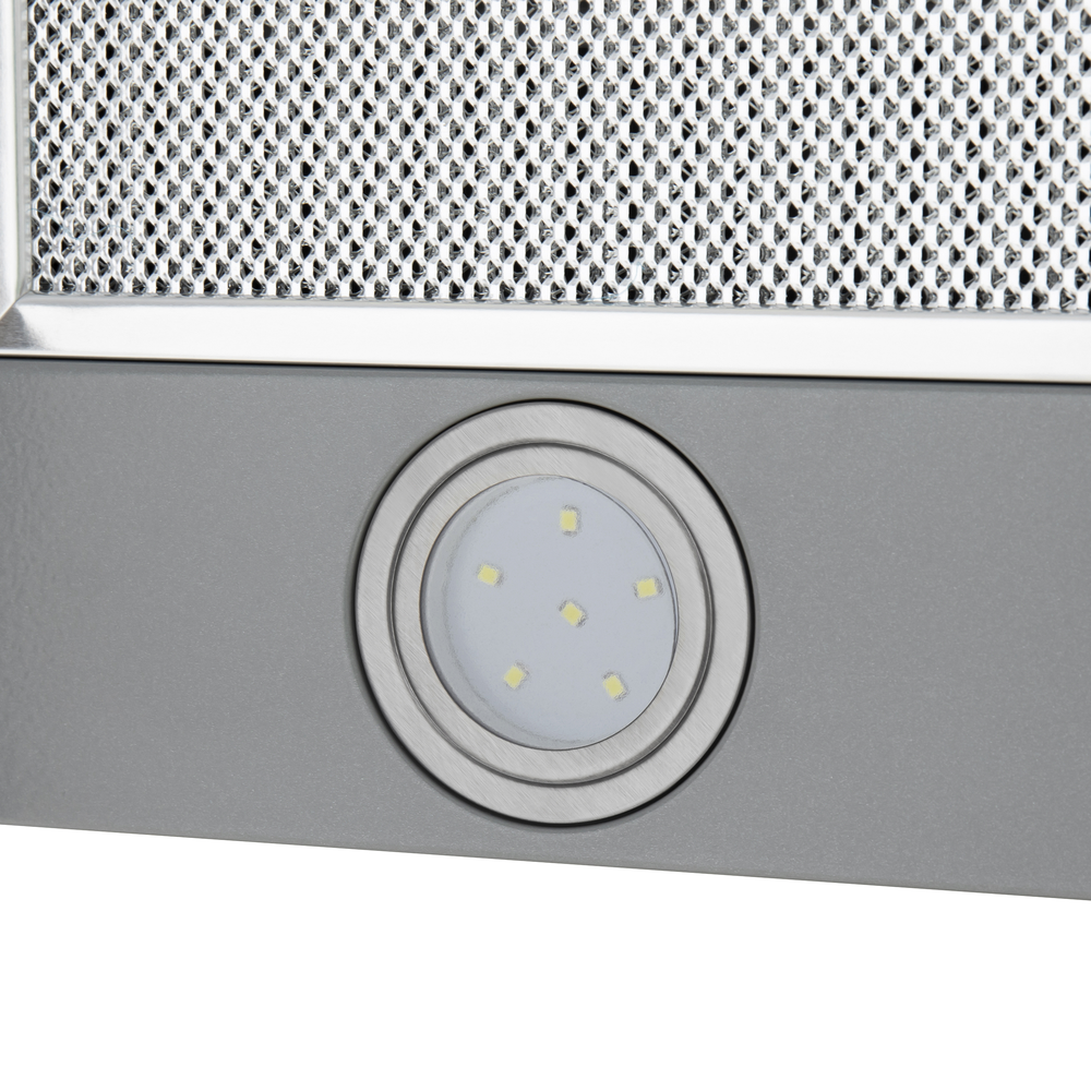 - ОписаниеОписаниеУправление Колыбельное 2-х скоростное управление. Особенности Телескопическая жировая решетка. Для работы вытяжки необходимо выдвинуть жировую решетку, данная конструктивная особенность создает широкую рабочую поверхность, что позволяет эффективно производить забор воздуха от плиты.Мощность мотора и максимальная производительностьПолная потребляемая мощность мотора 102 Вт, максимальная производительность 520 м3/ч. Данная вытяжка может работать на кухне площадью до 20 м2.Уровень шума 47 Дб.Освещение Вытяжка комплектуется энергосберегающим LED освещением 2*1 Вт.Цвет Нержавеющая стальМонтаж Вытяжка предназначена для встраивания в кухонный шкаф..Подключение Предназначена для работы в режиме отвода в вентиляционное отверстие, либо в режиме рециркуляции (использование сменного угольного фильтра, в комплект не входит)Дополнительно Угольный фильтр CF110 (1 шт.)